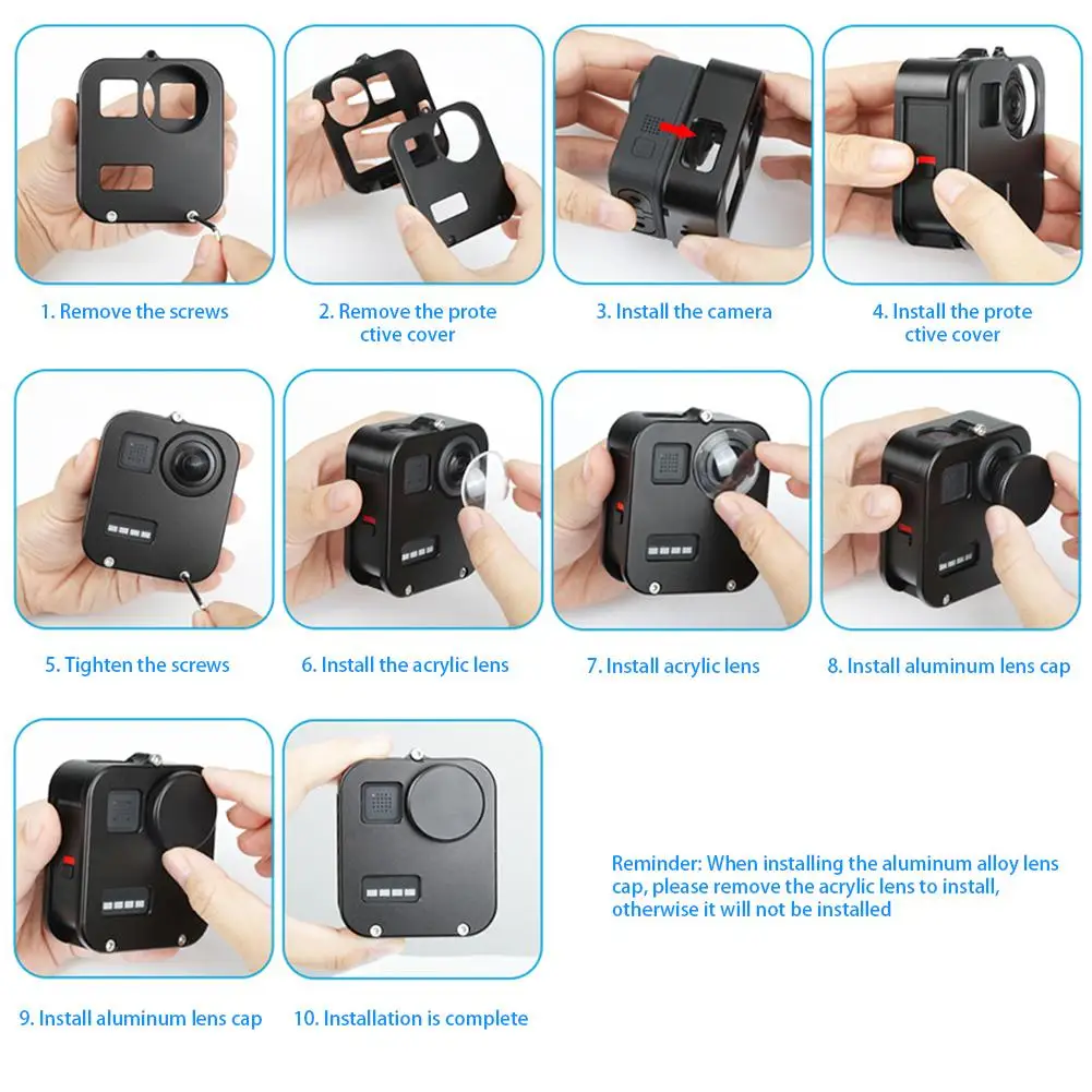 1. Премиум-Материал: изготовлен из литого алюминиевого сплава с ЧПУ, чехол прочный и подходит для GOPRO MAX, обеспечивая комплексную защиту для камеры GoPro.Влажные салфетки x 1