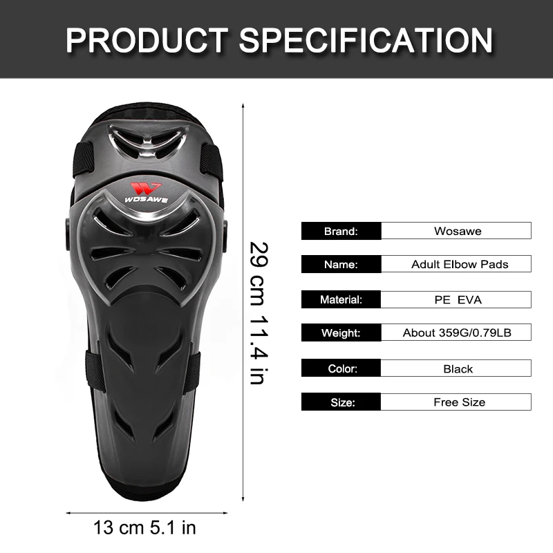 Анти-столкновения, Удобная подкладка из губки Удобные Воздухопроницаемая ткань Регулируемый эластичный наколенник Защита от проникновения и ударопрочности Подходит для большинства, Гибкая регулировка Эргономичный дизайн для максимальной подвижности Высокое качество, формованный EVA, вспенивающийся материал, минимизирует резкие толчки до колена Очень эластичный, ветрозащитный и сохраняет тепло Параметры: Торговая марка:WOSAWE Название продукта:Наколенники для мотоцикла Налокотники Для сезона:Весна, лето, осень и зима Размеры:На один размер больше Цвет:Черный Материалы:Эва (этиленвинилацетат) Пол:Унисекс Посылка включает в себя: 1 пара наколенников 1 х пара налокотников