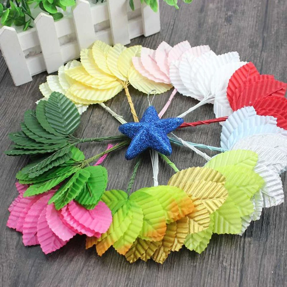 30 шт./компл. мини нейлоновые шелковые листьев в форме листьев искусственный цветок для Свадебные украшения DIY ВЕНОК подарок Скрапбукинг ремесло в форме искусственных цветов