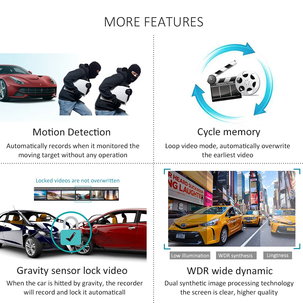 Советы:Пожалуйста, отформатируйте карту перед использованием, пожалуйста, используйте высокоскоростную карту памяти calss 10, если вы не подтверждаете качество карты, вы можете купить видеорегистратор с нашей картой, так что он может работать хорошо. Аккумулятор в основном используется для сохранения файлов в аварийной ситуации. Пожалуйста, продолжайте подключать Внешнее питание во время использования.