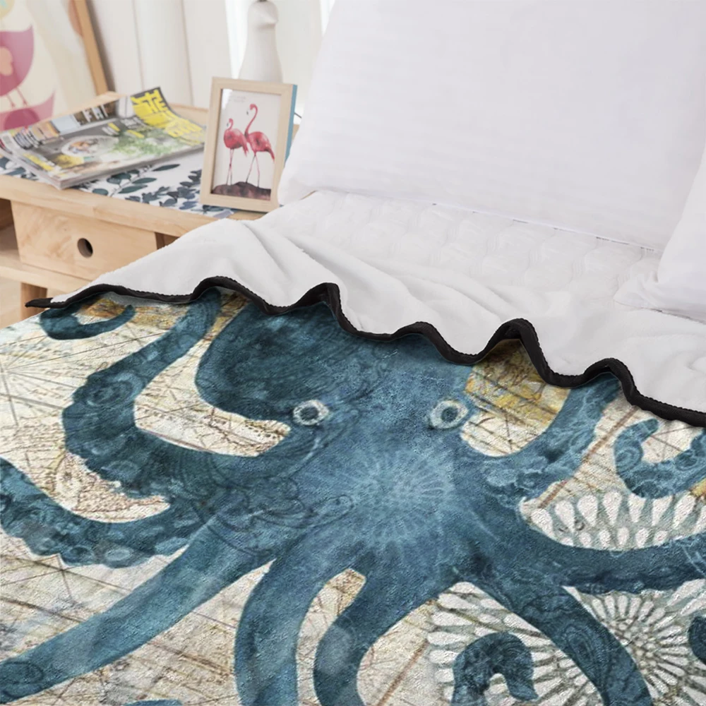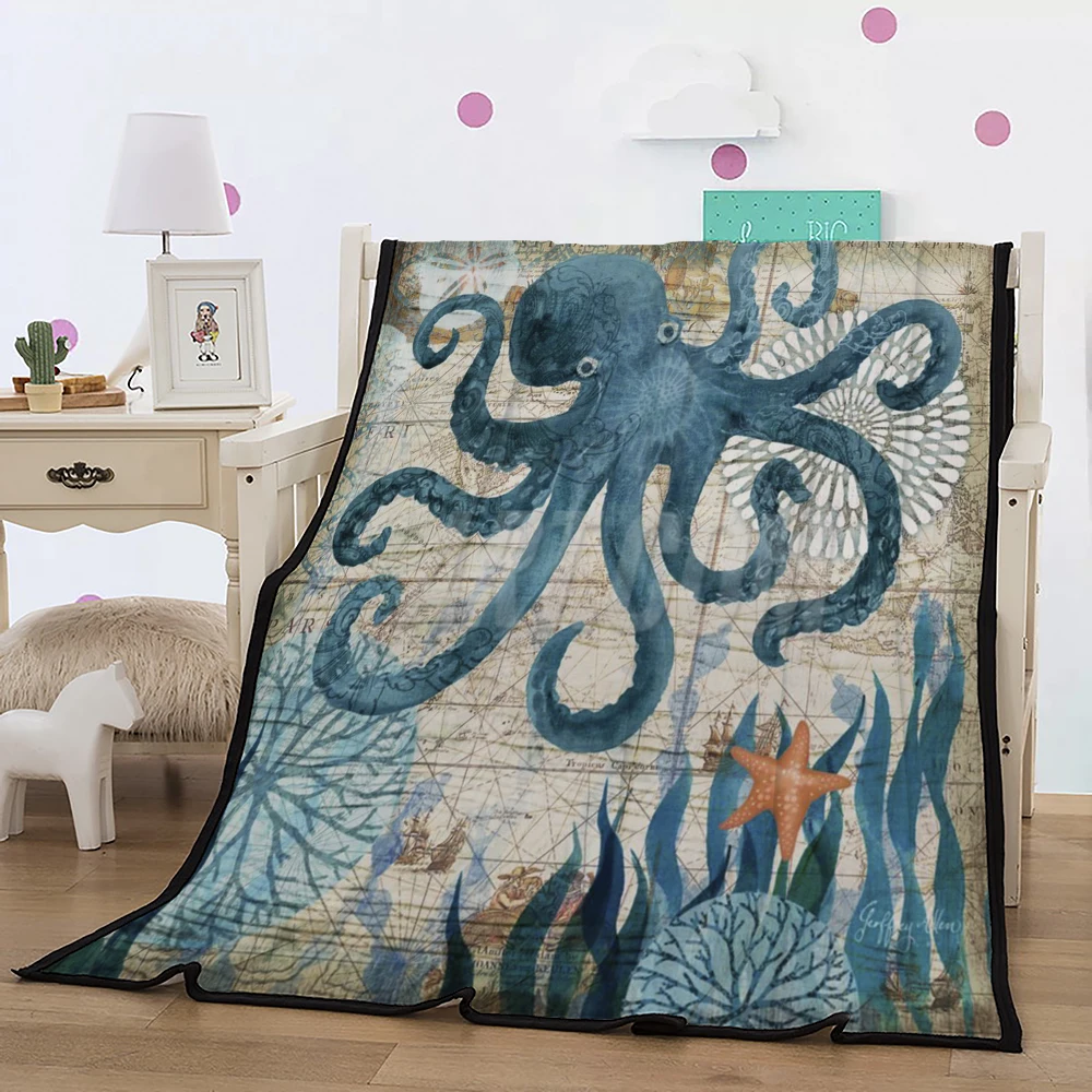 Большой синий Осьминог шерпа Флисовое одеяло на заказ океан Животные 3D печать Коралловое одеяло Кондиционер кровать диван плед