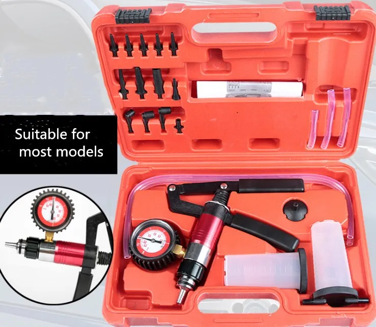 Автомобильный тормозной жидкости Bleeder замена масла вакуумный пистолет.Характеристики:Материал: пластик и медьЦвет коробки: красныйРазмер коробки: 35*25*8 смПосылка включает в себя:Один набор автомобильного вакуумного насоса тормозного масла тестер