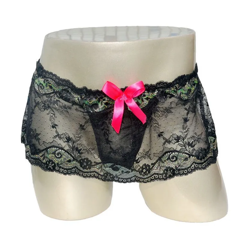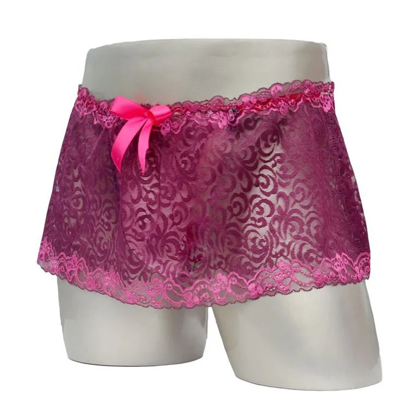 Мужское сексуальное нижнее белье с цветочным кружевом, с бретельками, Wetlook, для Сисси, для геев, трусы, трусы-боксеры, на шнуровке, штаны, юбка