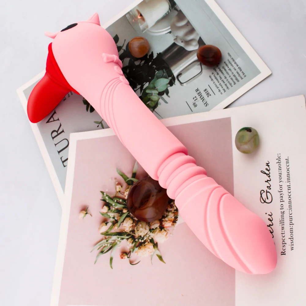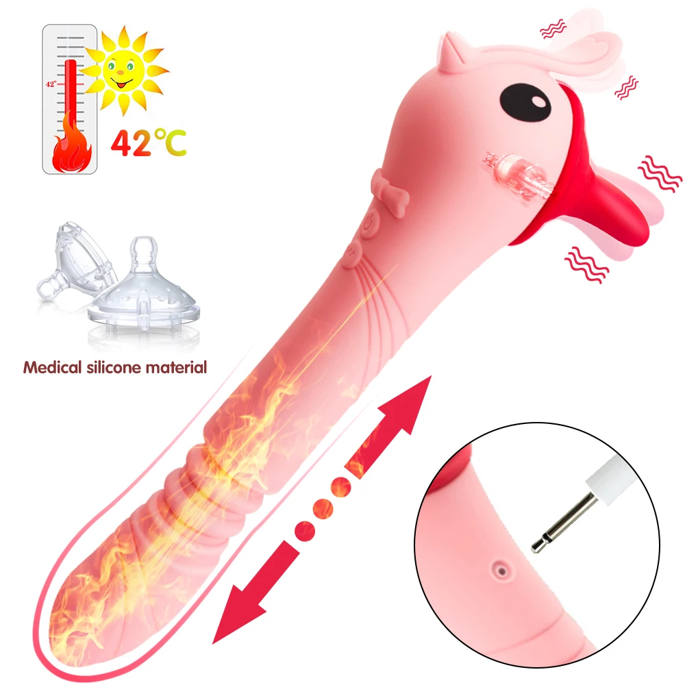 Телескопический фаллоимитатор вибратор для взрослых USB Перезаряжаемый массаж языка 12 Скоростей Вибрационный Стимулятор клитора интимные игрушки для женщин