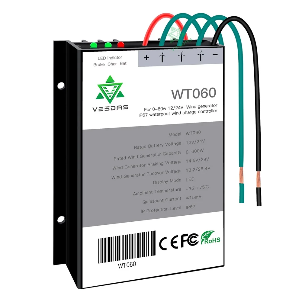 1. Этот контроллер может управлять ветряными турбинами для автоматической зарядки аккумулятора. Когда аккумулятор полностью заряжен, тормоз может автоматически управляться внутренней схемой. Когда напряжение батареи падает, чтобы восстановить уровень напряжения, ветряная турбина может автоматически восстановиться до зарядки батареи, чтобы защитить ветряную турбину и батарею.