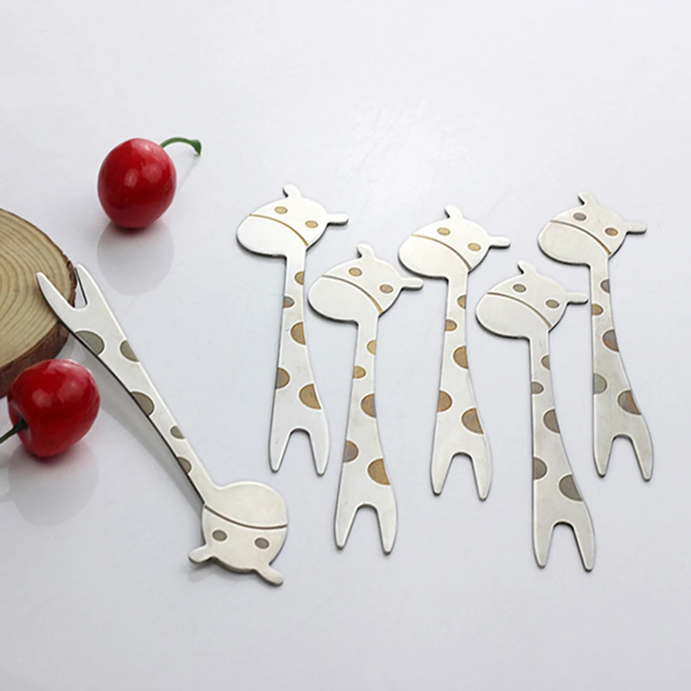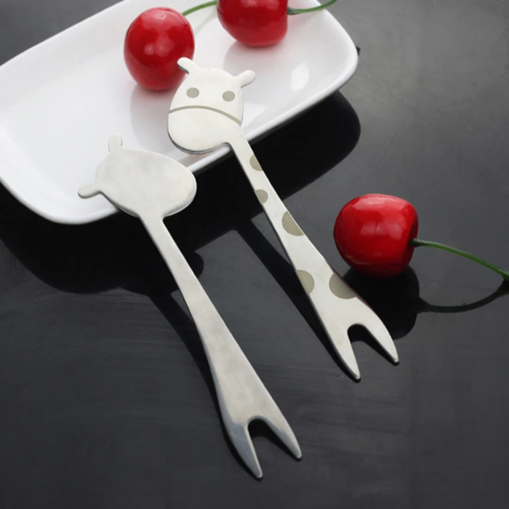 Жираф дизайн из нержавеющей стали торт десерт закуски вилка для фруктового салата детская посуда