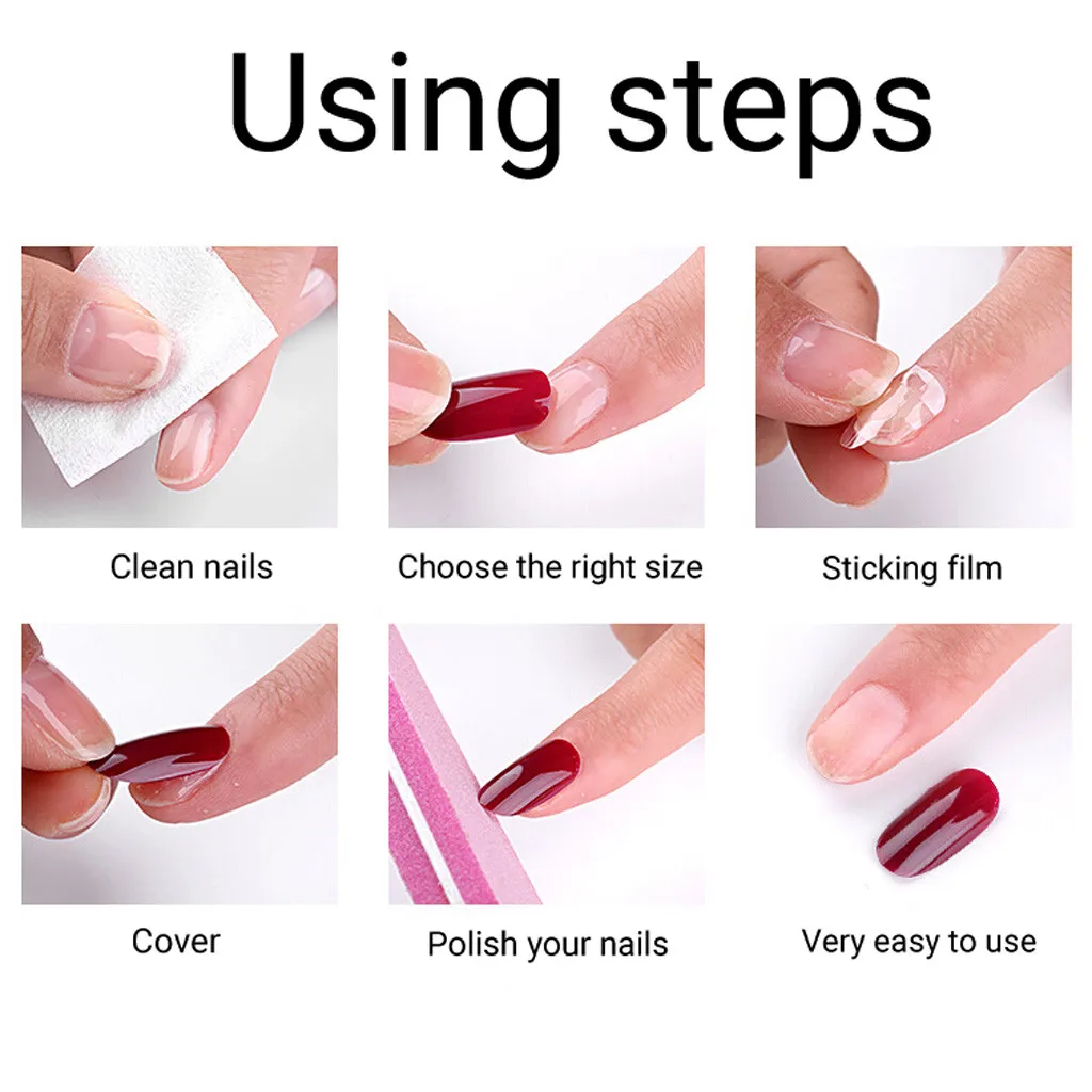 Легкая Операции: Очистите ногти, затем выберите правильный размер ногтей, нанесите Наклейте наклейку на ногти и нажмите и удерживайте в течение 20 секунд. DIY мгновенный ногти, 3 минуты применяются дома вместо 30 минут в салоне.