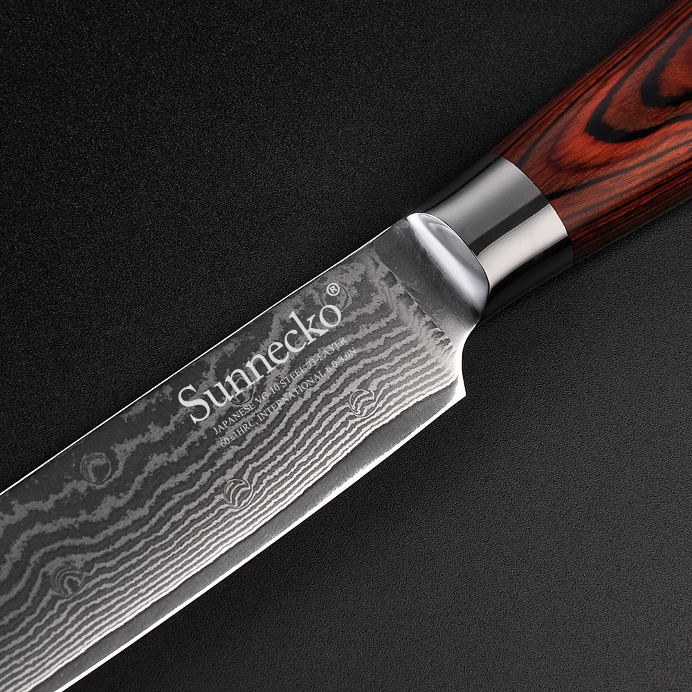 SUNNECKO Premium 8'' Slicing Knife Damascus Steel Japanese VG10 Blade Sharp Meat Fruit Cut Knife Pakka Wood Handle Kitchen Knives