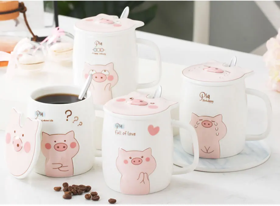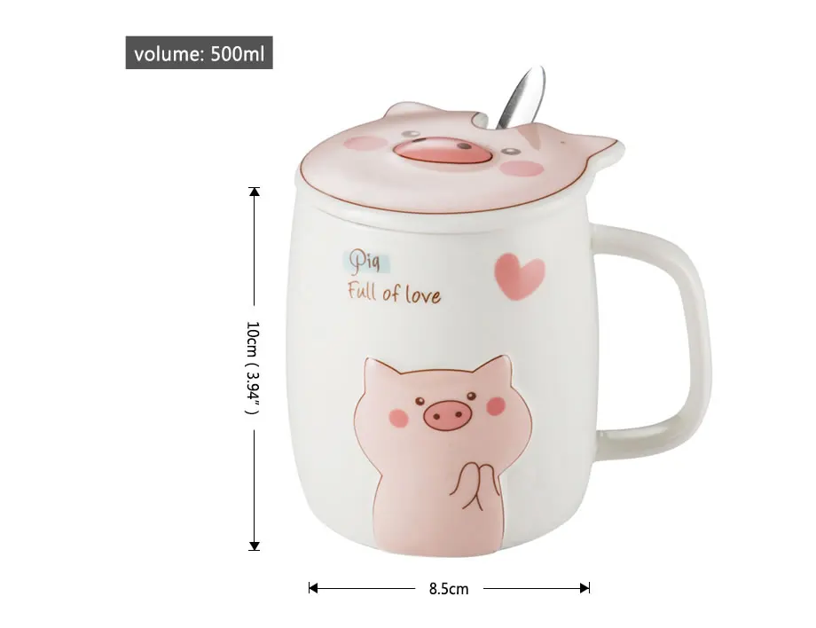 OBR 500 мл креативная керамическая кружка в форме свиньи, кофейная кружка с крышкой и ложкой, тумблер, мультяшная Милая кружка для питья с животными, чайная кружка "друзья", подарок