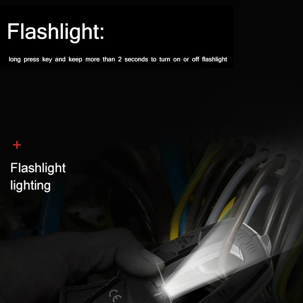 Кнопка удержания и подсветки: Кнопка удержания данных и кнопка подсветки находятся на стороне счетчика. Короткое нажатие удерживает данные для вас, и длительное нажатие включит подсветку. Это удобно для использования одной рукой при измерении.