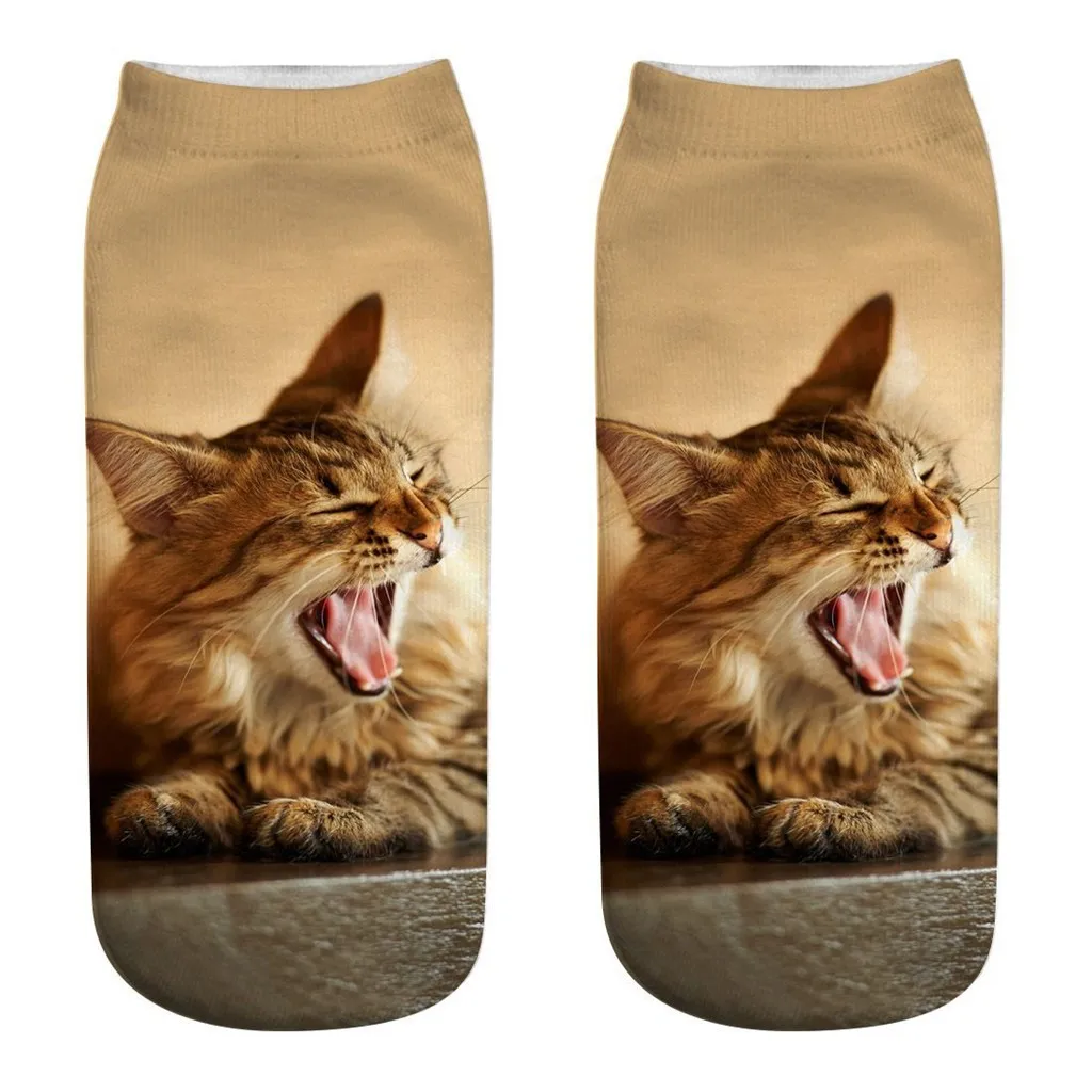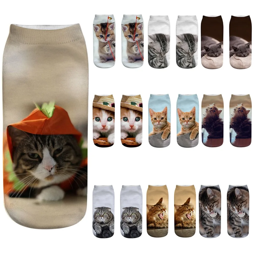 Новинка, женские носки до лодыжки с объемным изображением забавного кота, милые цветные короткие носки с рисунками из мультфильмов