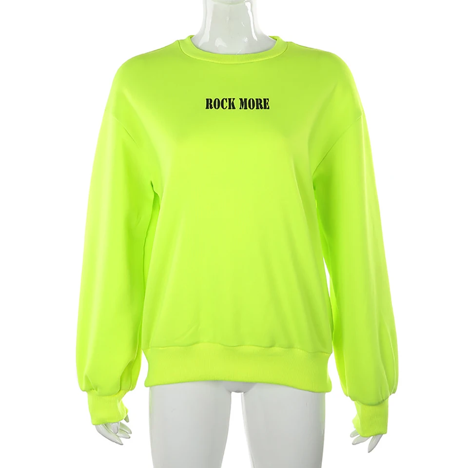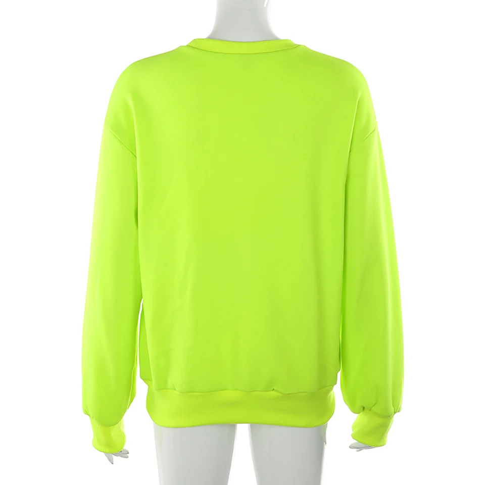 Название: неоново-зеленая Толстовка большого размера; Женская Повседневная Свободная Толстовка в стиле Харадзюку; осенние пуловеры с длинными рукавами; женская уличная одежда