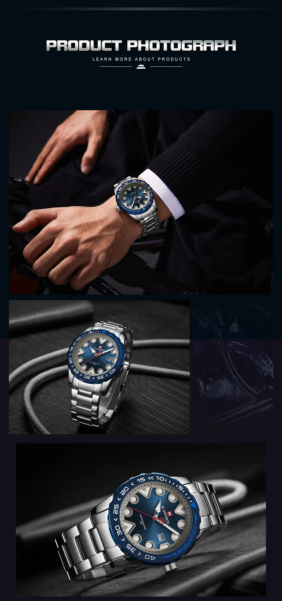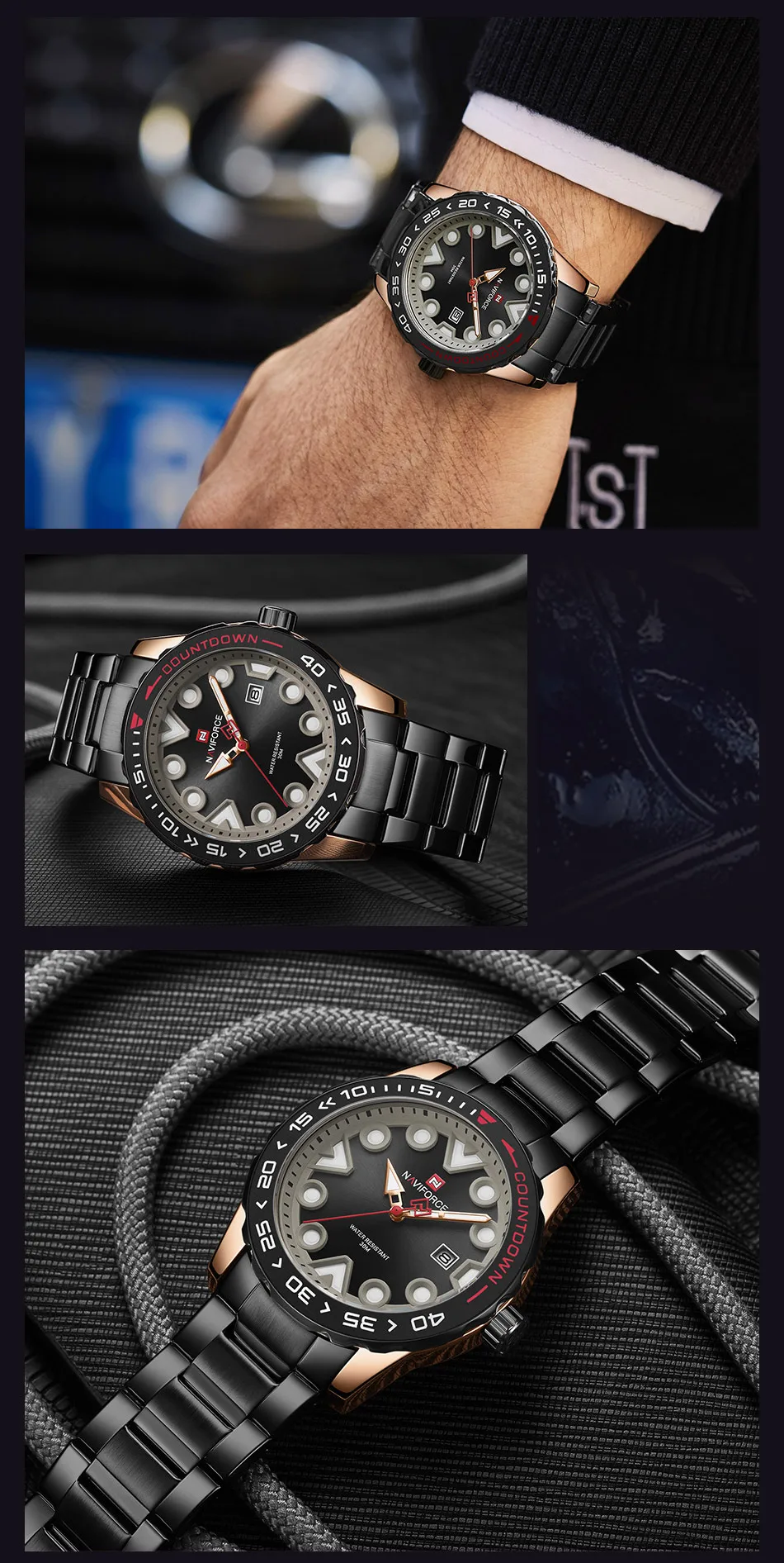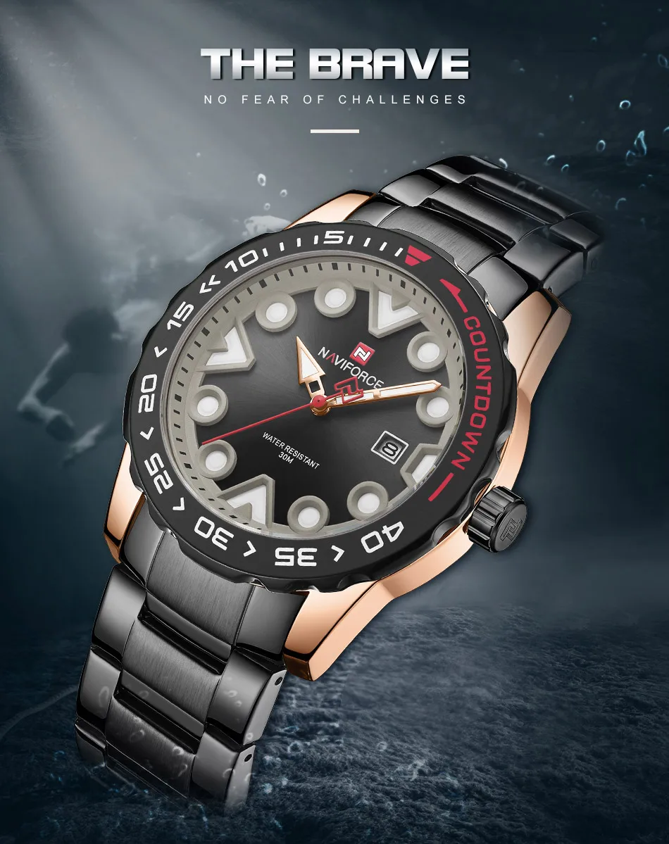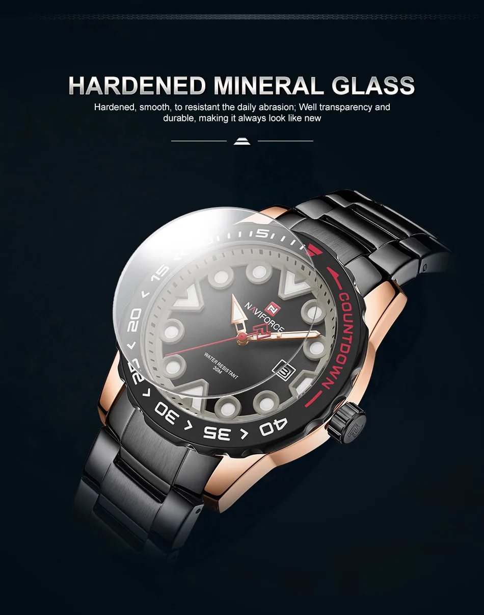 Модель: NAVIFORCE NF9178 Часовой механизм: кварцевый механизм Пол: Для мужчин и мужской Стиль: Модный, Повседневный, Спортивный Материал циферблата: закалённое минеральное стекло Материал ремешка: ремешок из нержавеющей стали Тип застежки: складная застежка с безопасной Диаметр циферблата: 44,5 мм Чехол Толщина: 12,5 мм Длина ремешка: 245 мм Ширина ремешка: 23 мм Вес изделия: 143 г Характеристики: Водонепроницаемость 30 м, отображение даты, светящийся