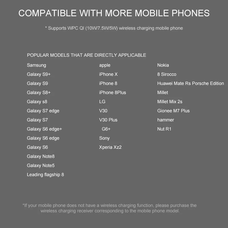 Противоскользящий и противоударныйМощность беспроводной сети: 10 Вт, 7,5 Вт, 5 Вт