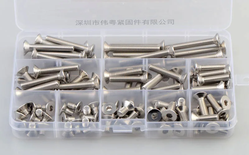 100 шт. M6 * 8/10/12/16/20/25/30/35/40/45 из нержавеющей стали 304 винт с потайной плоской головкой с внутренним шестигранником с комбинированным набором A2-7991 продукт Вес нетто: 565 г