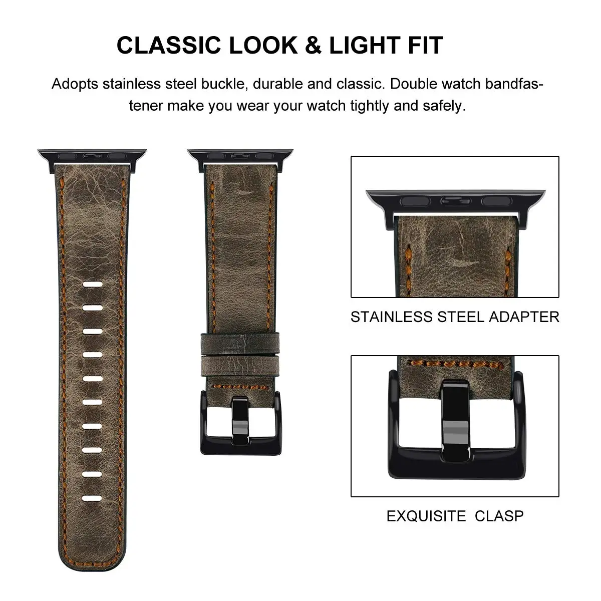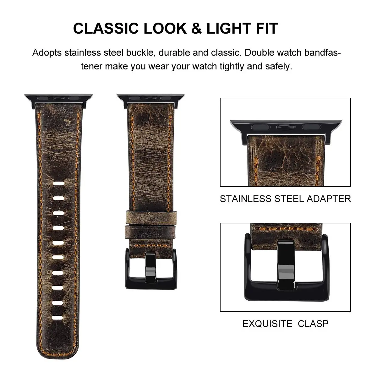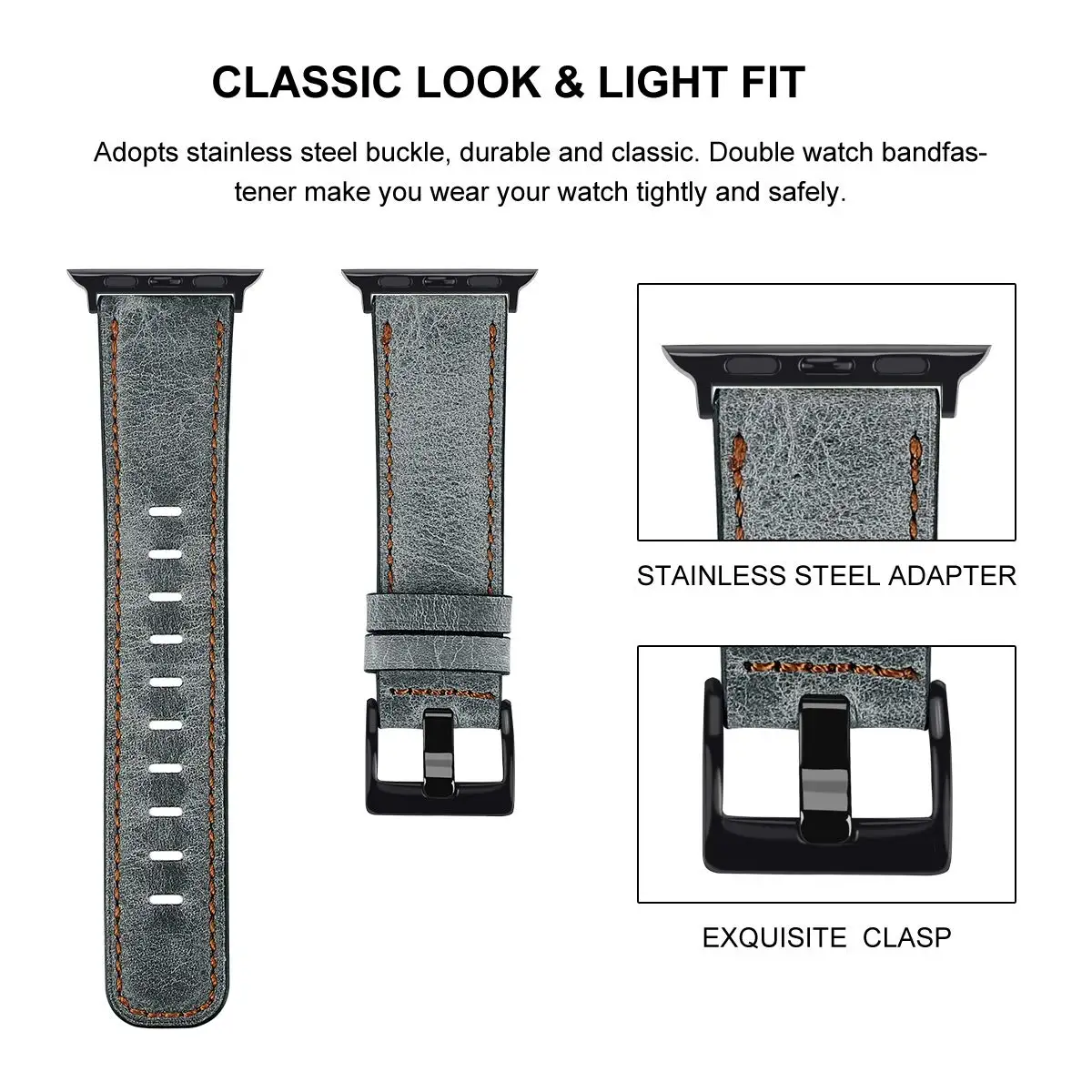 Безопасность:Ремешок поставляется с соединителями из нержавеющей стали на обоих концах, которые надежно фиксируются на часах, легко надевать и снимать.
