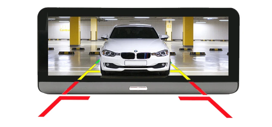 Когда автомобиль находится на заднем ходу, этот Автомобильный видеорегистратор автоматически переключается на изображение камеры заднего вида с помощью линии парковки
