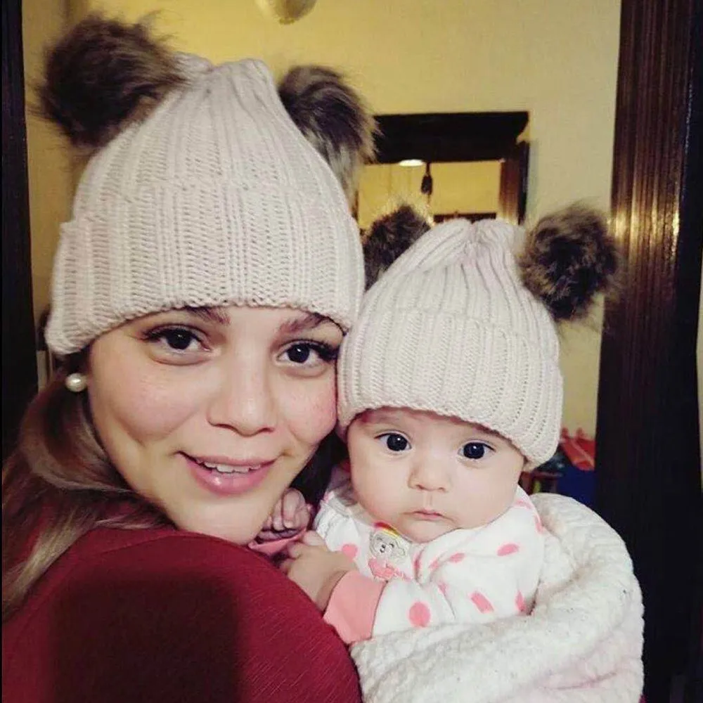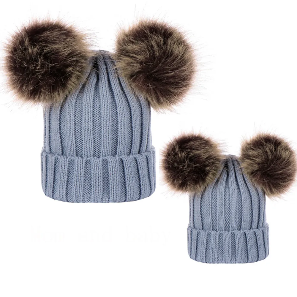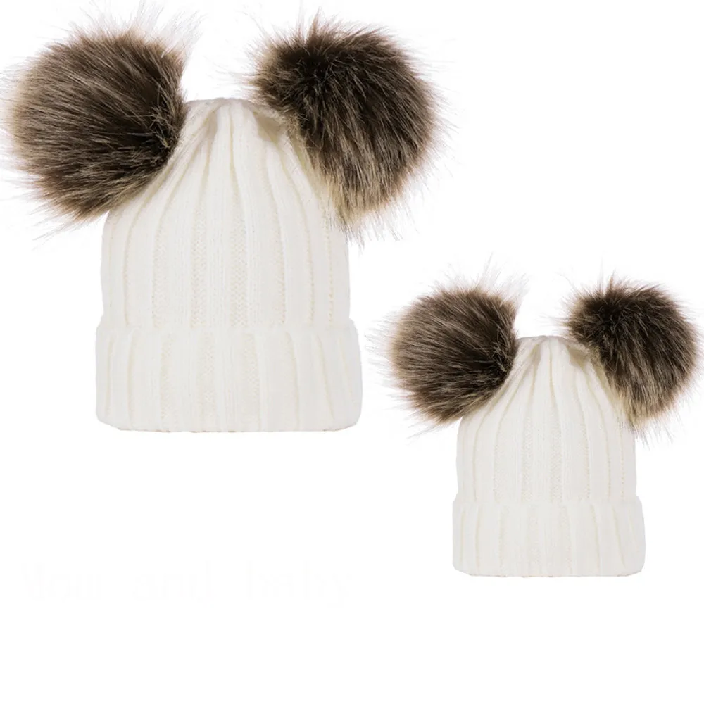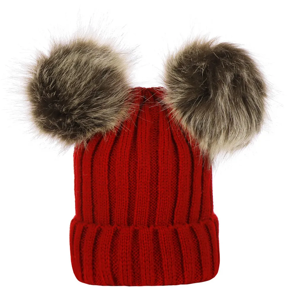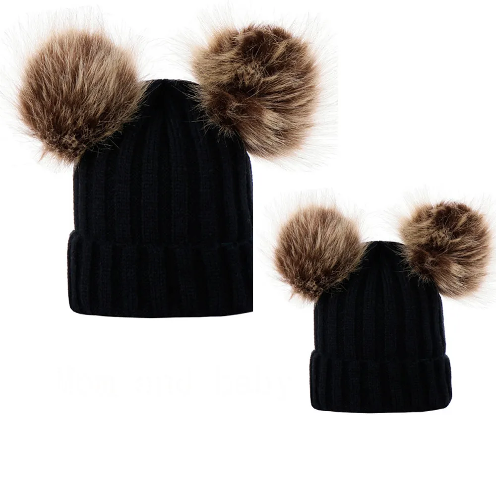 2 шт. зимний детский теплый зимний меховой вязаный шарик шерстяная шапка для родителей и детей