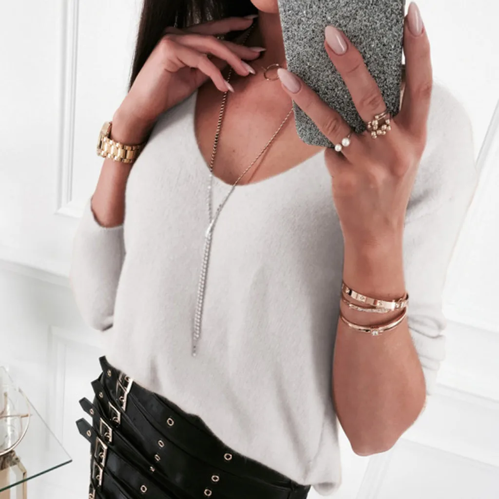 1. Особенности: повседневные топы, длинные рукава, пэчворк, пуловеры, топы с v-образным вырезом, повседневные топы, повседневная одежда, стильный и модный дизайн, Осенние повседневные топы.