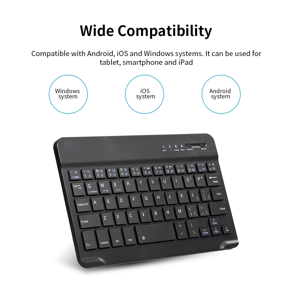 Клавиатура спроектирована с помощью простого ключа, баланса сил, низкого уровня шума, хорошего пружинного эффекта и удобной работы. Долгосрочное обслуживание, подходит для мобильных телефонов и планшетов, беспроводное соединение более удобно с этой BT клавиатурой.