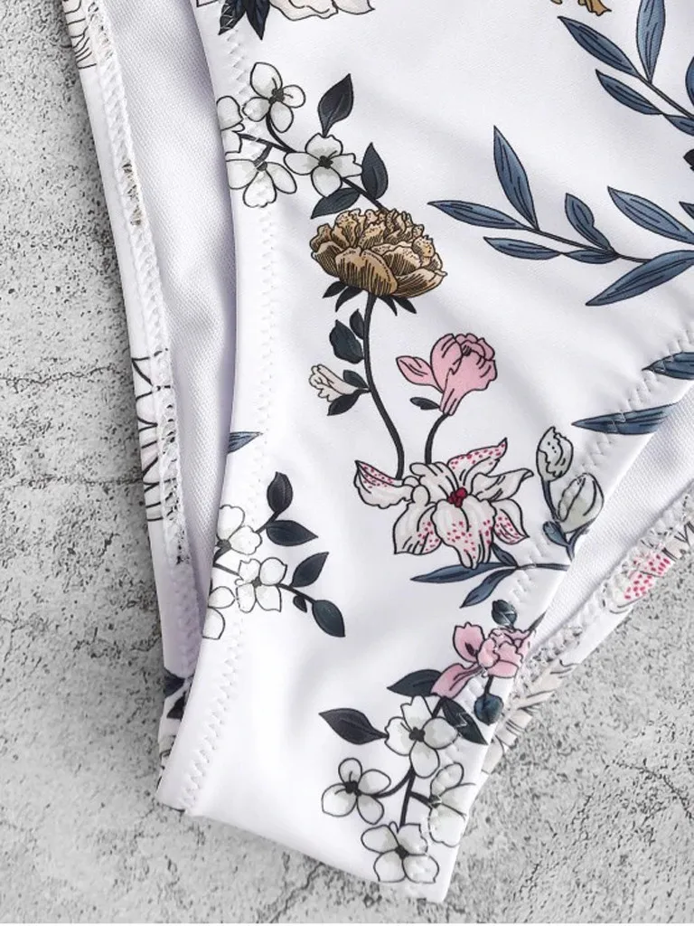 KANCOOLD Sexy swimwear women Floral Print Lace-up Scalloped Bandeau Bikini Set Fashion swimsuit women summer clothes women 1216