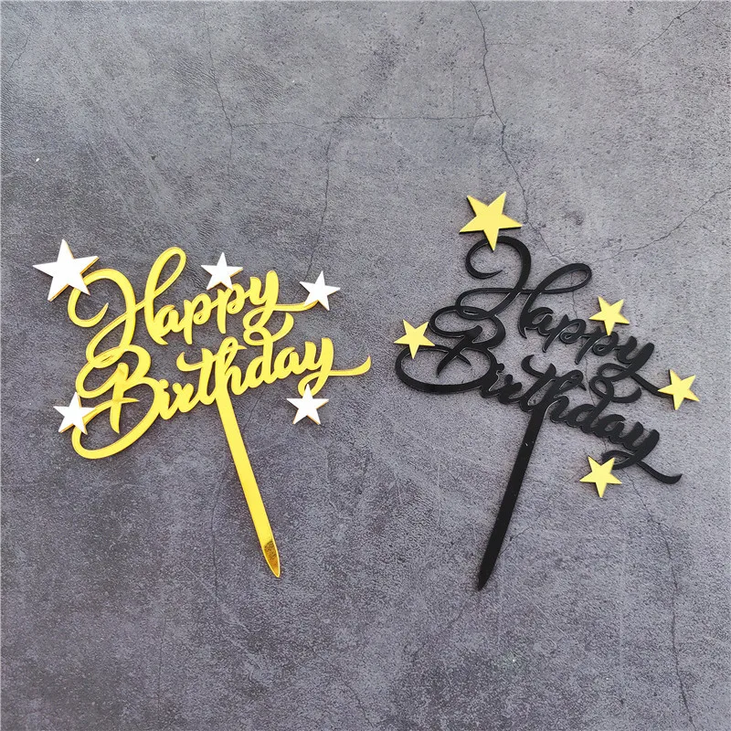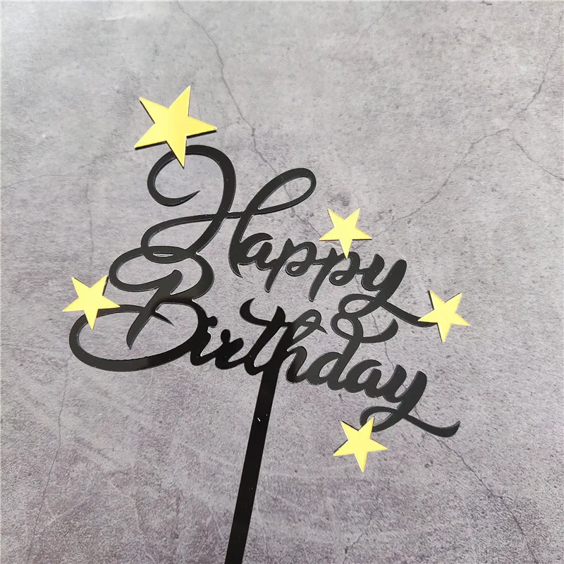 1 шт. золотой черный акриловый Топпер для торта «С Днем Рождения», вставка для торта, украшения кекса, украшения для дня рождения