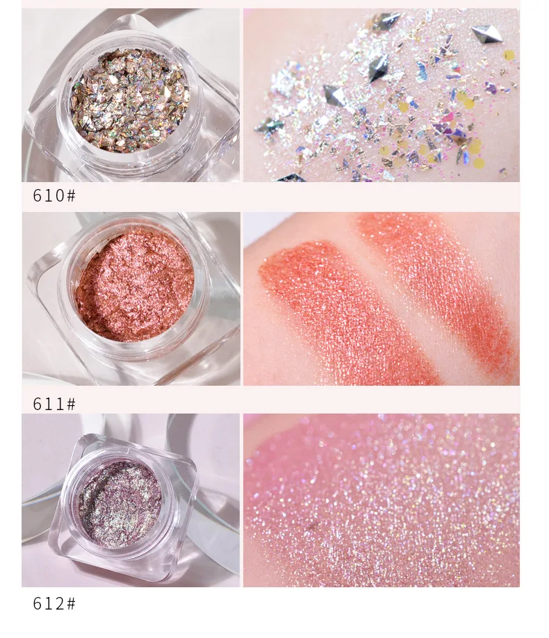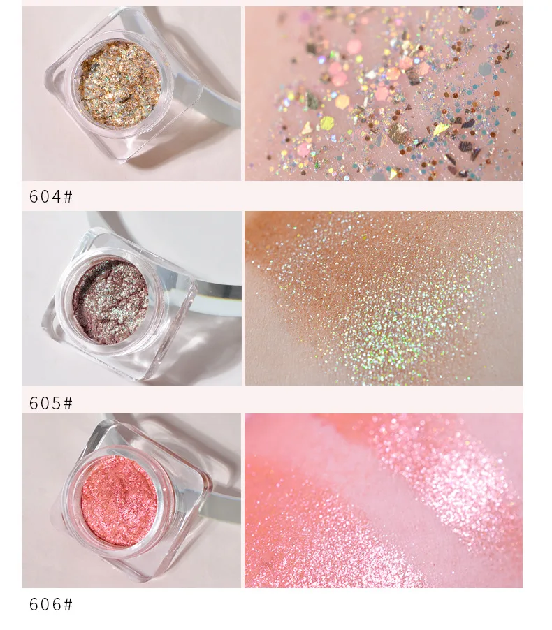 Палитра теней для век с блестками, 6 цветов в комплекте, мерцающие алмазные тени для век, крем для макияжа, пигментная пудра для век, косметика