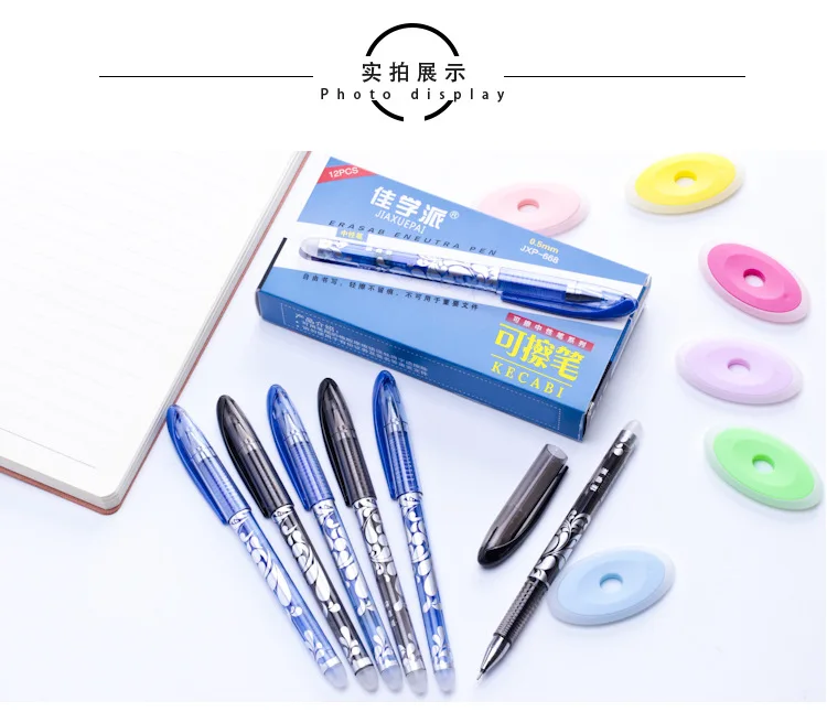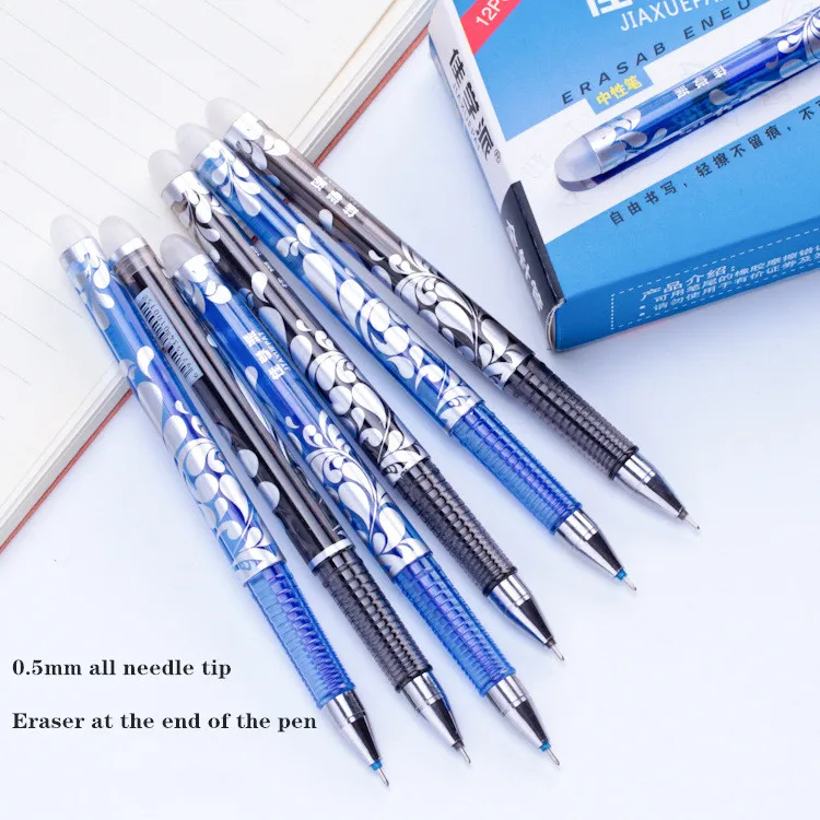Стираемая ручка, набор, моющаяся ручка, синий, черный цвет, чернильные ручки для письма, шариковые ручки для школы, офиса, канцелярские принадлежности, запасные части для экзамена
