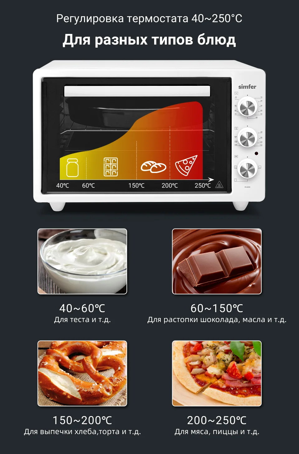 Характеристики Мини-печь Simfer M4200 серия Albeni Plus, 3 режима работы, 2 противня