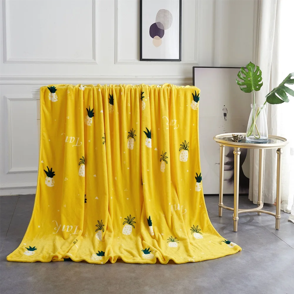 Желтое фланелевое одеяло с тропическими фруктами и ананасами, Лидер продаж, Флисовое одеяло из кораллового флиса, очень теплое мягкое зимнее одеяло на диван-кровать