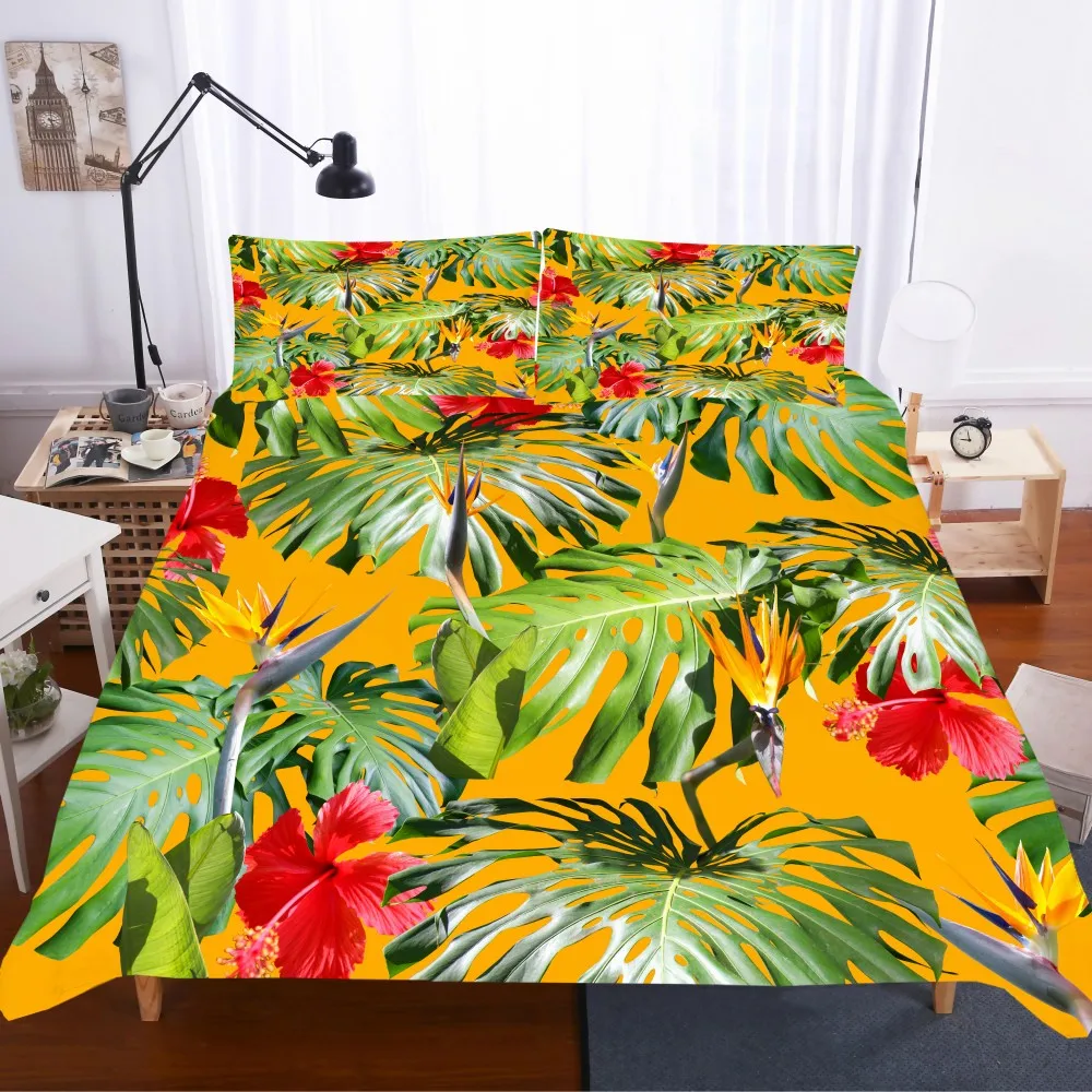 Тропические растения тема пододеяльник набор полный королева король двойной размер одеяло покрывало с наволочкой зима девушки дома Новые постельные принадлежности