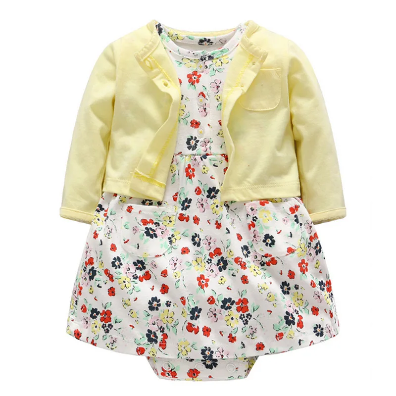 Комплект из 2 предметов, комплекты одежды для маленьких девочек Рубашка с длинными рукавами Топы, платья с короткими рукавами и цветочным рисунком одежда для маленьких девочек
