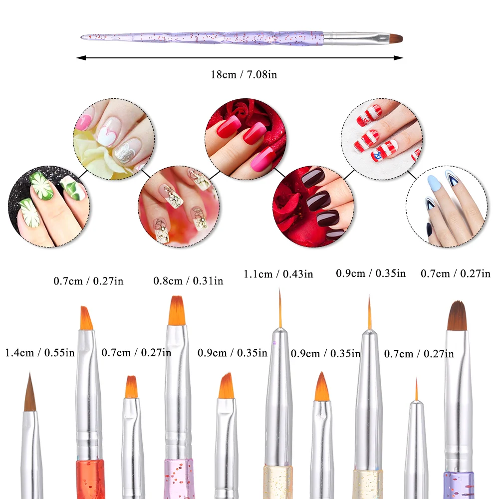 Этот набор кистей для ногтей поставляется с 10 различными размерами, идеально подходит для дизайна ногтей, позволяет создавать красивые узоры ногтей за считанные секунды.