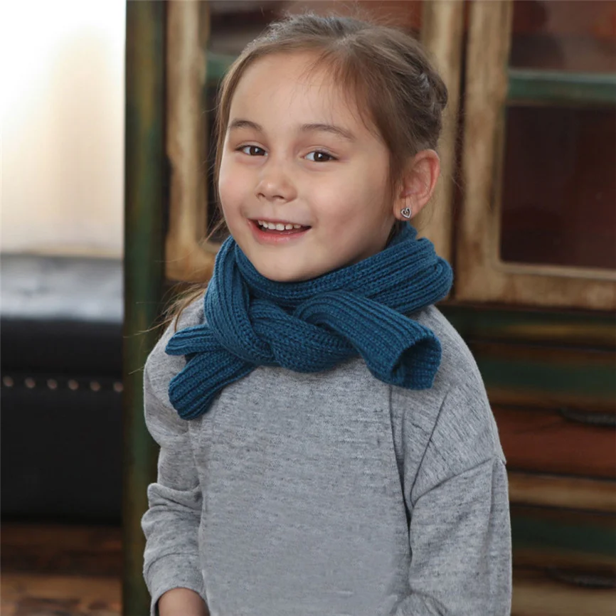 Милый модный вязаный шарф для маленьких мальчиков и девочек; Сезон осень-зима; Теплый однотонный шарф