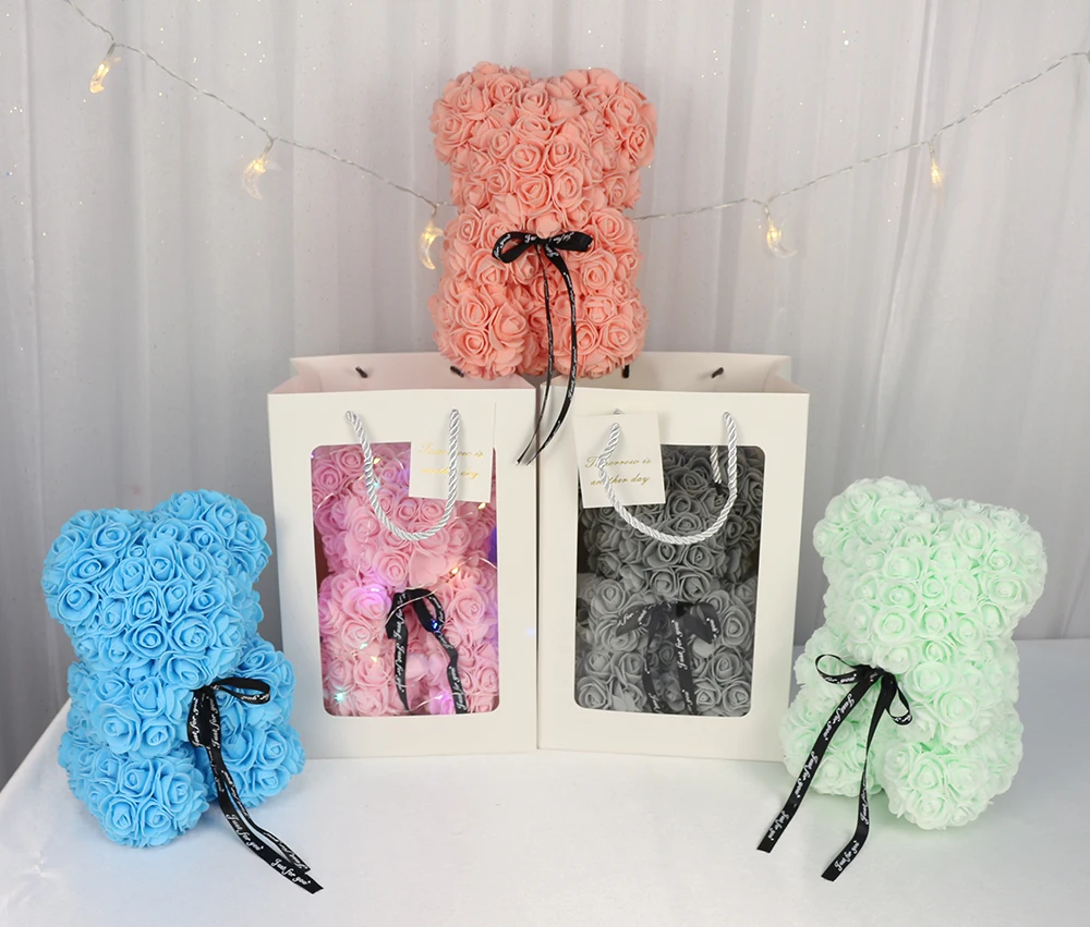 DIY 25 см/40 см Тедди Искусственные из ПЭ цветы медведь Роза подарок на День святого Валентина для девушки женщины жена мать день подарок с коробкой