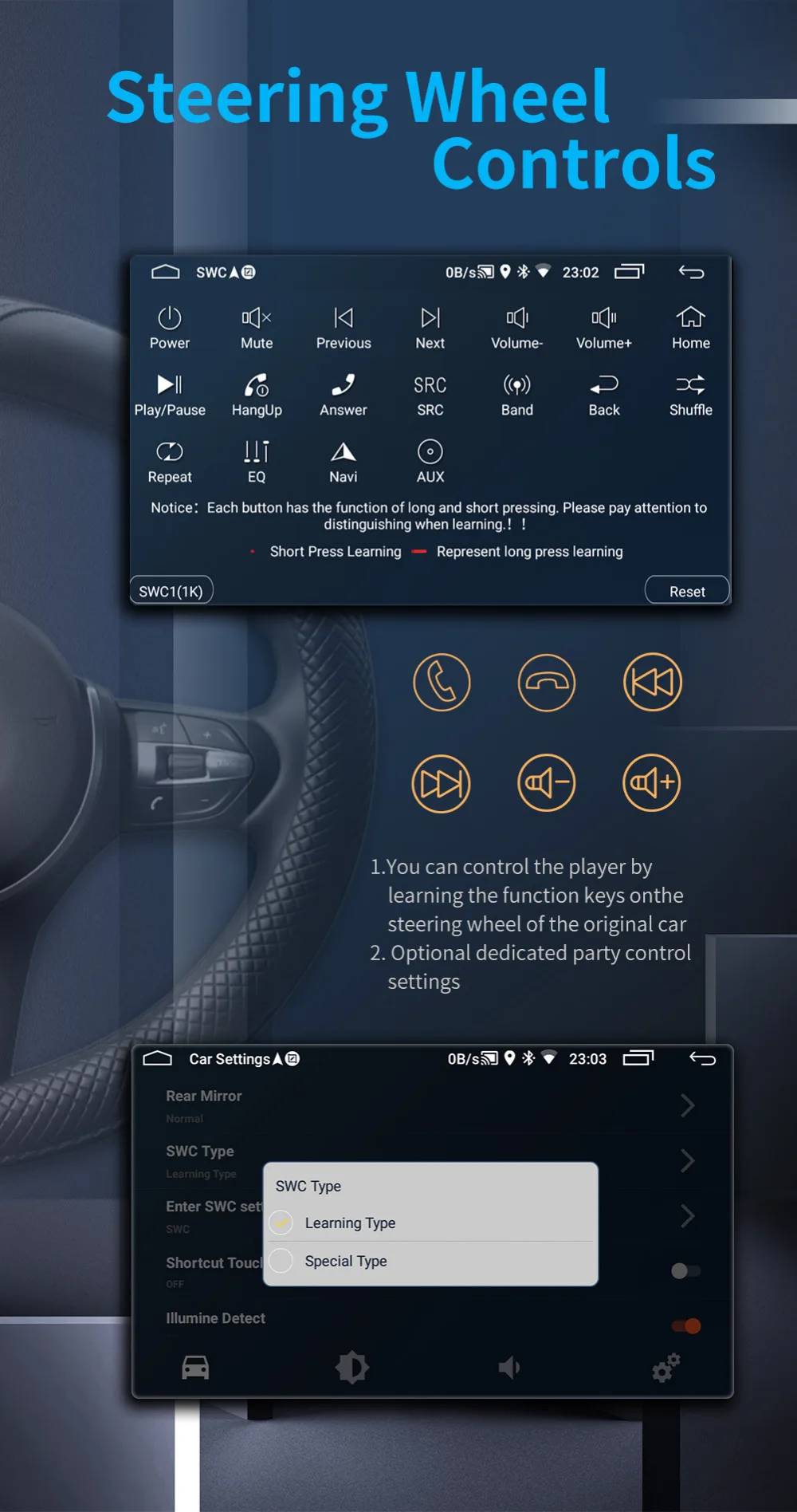 7. Поддержка оригинальной кнопки рулевого колеса автомобиля