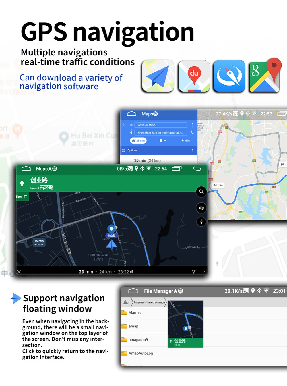9. Поддержка GPS карт, таких как Google Online MapYandex.navi / Waze on Line / Sygic...