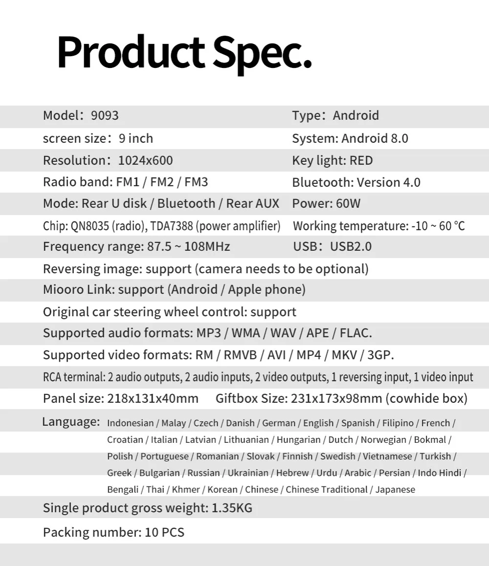 3. Процессор: четырехъядерный процессор Cortex RAM + ROM: 1G + 16G, потому что система занимает внутреннюю память, операционная система занимает около 4-6 ГБ памяти. Бесплатная установочная карта