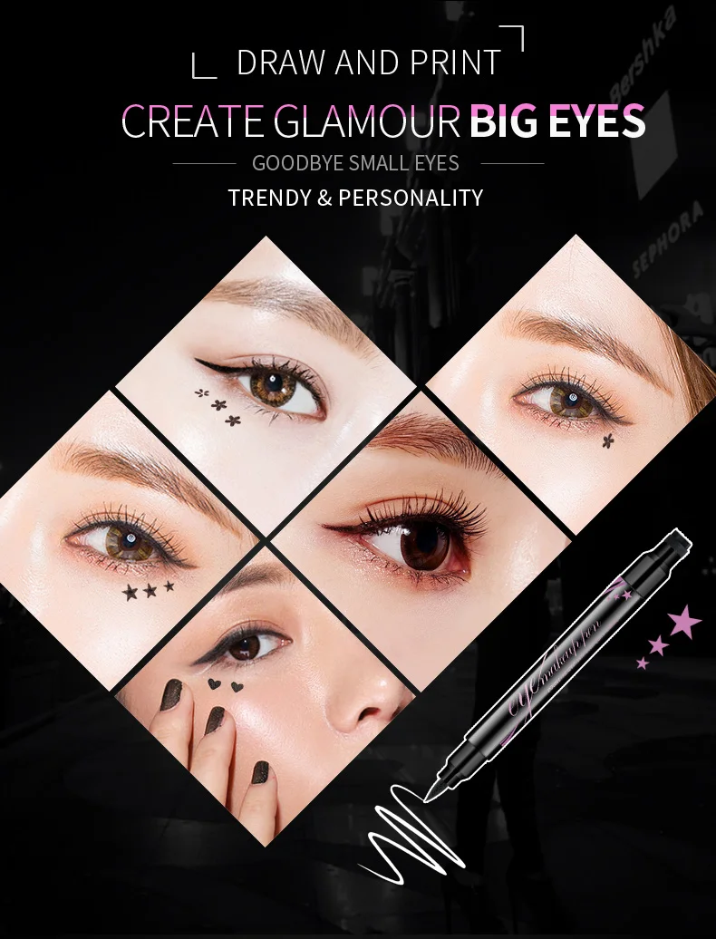 Инновационный двуглавый дизайн Подводка для глаз: контурная тонкая подводка для глаз и увеличение глаз Индивидуальная печать: аккуратное украшение, модный макияж глаз