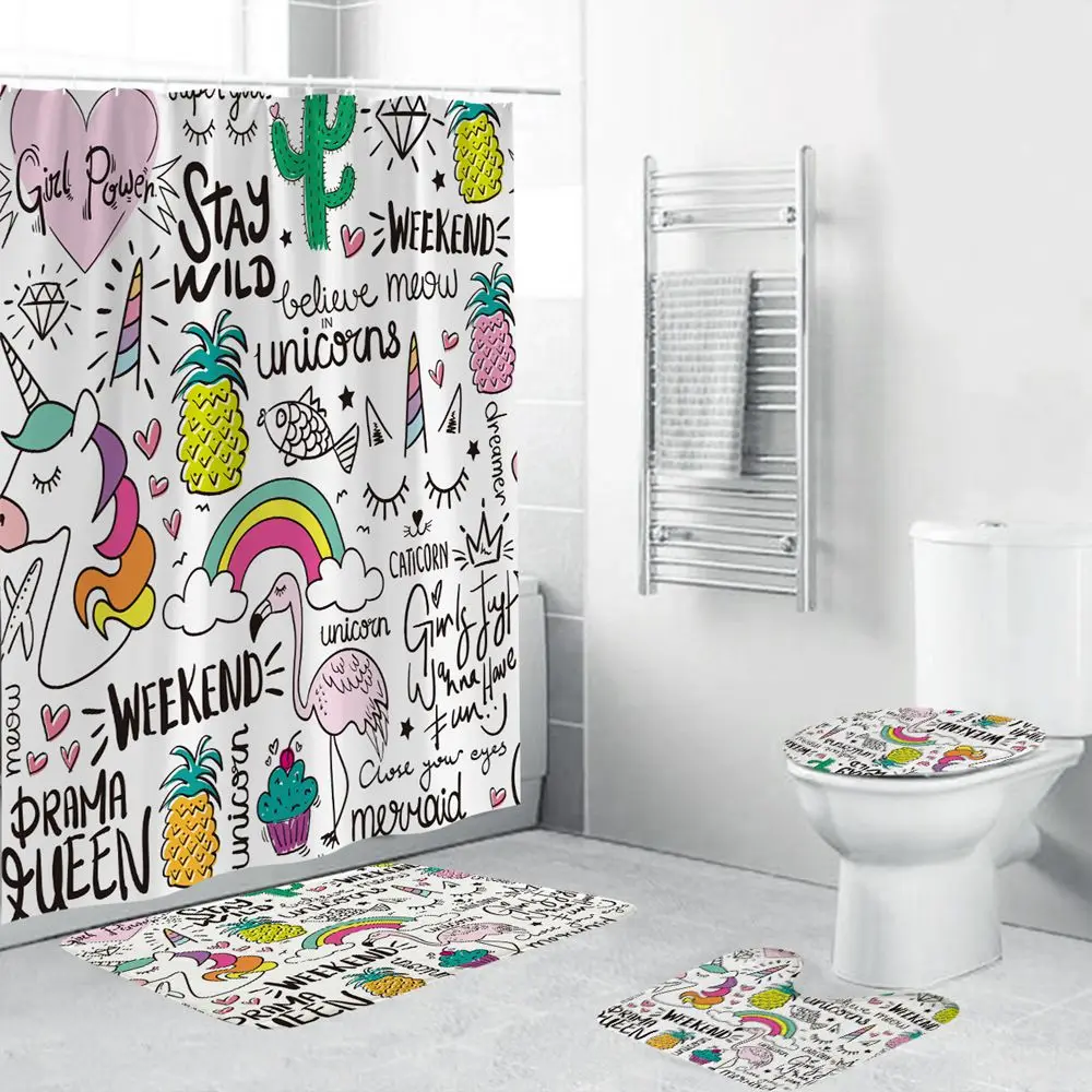 Dafield набор штор для ванной комнаты смешной декор динозавр Единорог Кролик кошка набор штор для ванной комнаты