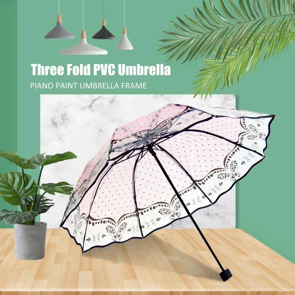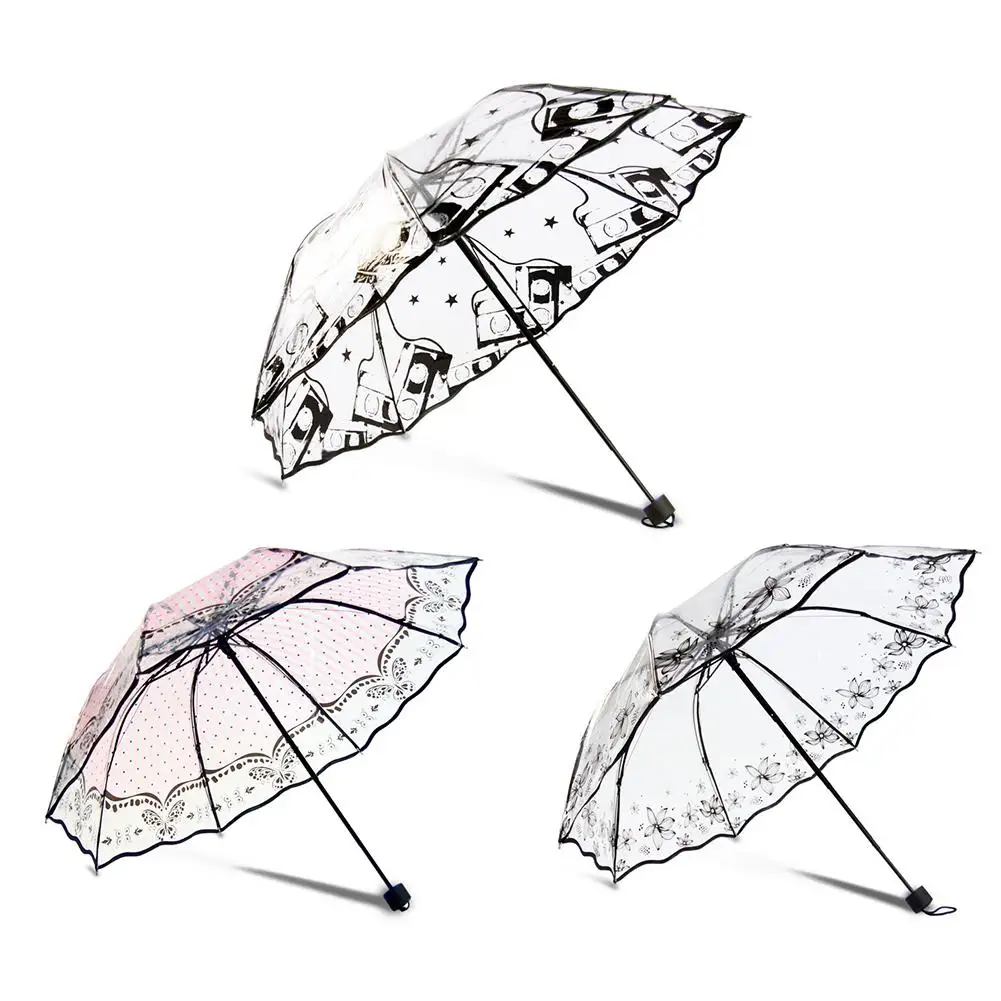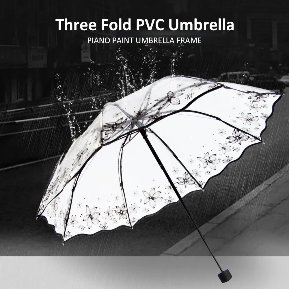 Прозрачный дождевой Зонт с цветочным принтом, Ветрозащитный складной зонт, трехслойный, защищающий от солнца, для путешествий, для использования на улице, дома