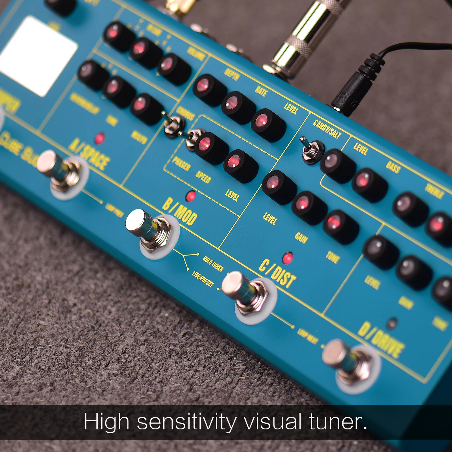 Комбинированная педаль эффектов с72 ИК-шкафа имитация, Широкий диапазон звучания;5 аналоговых эффектов(Boost (+ 15дБ), овердрайв, искажение, Хорус, фазер);2 цифровых эффекта(Отсрочка, реверберация).