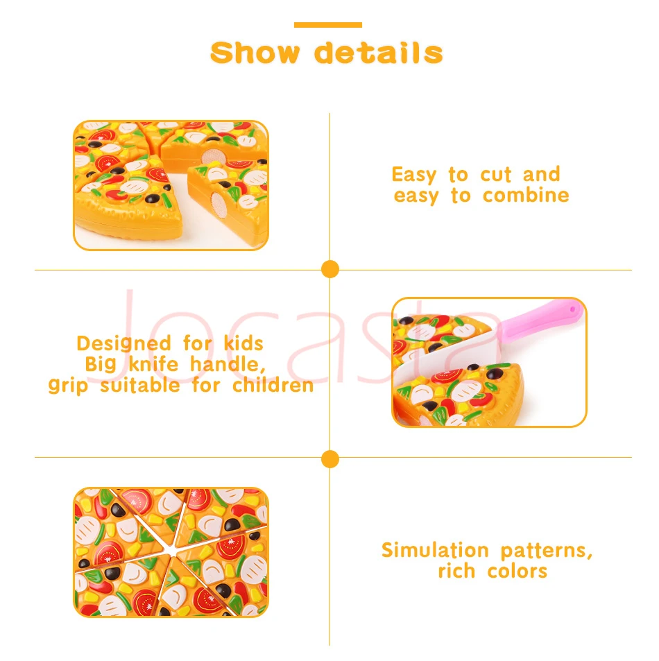 -Дизайн на липучке, легко резать или наклеивать. -Экологически чистые материалы, без заусенцев, безопасно во время игры. -Обучение воображению ребенка, ролевые игры, как взрослый. -Режет пиццу, делится со своими друзьями. -Отличные подарки для ваших детей.