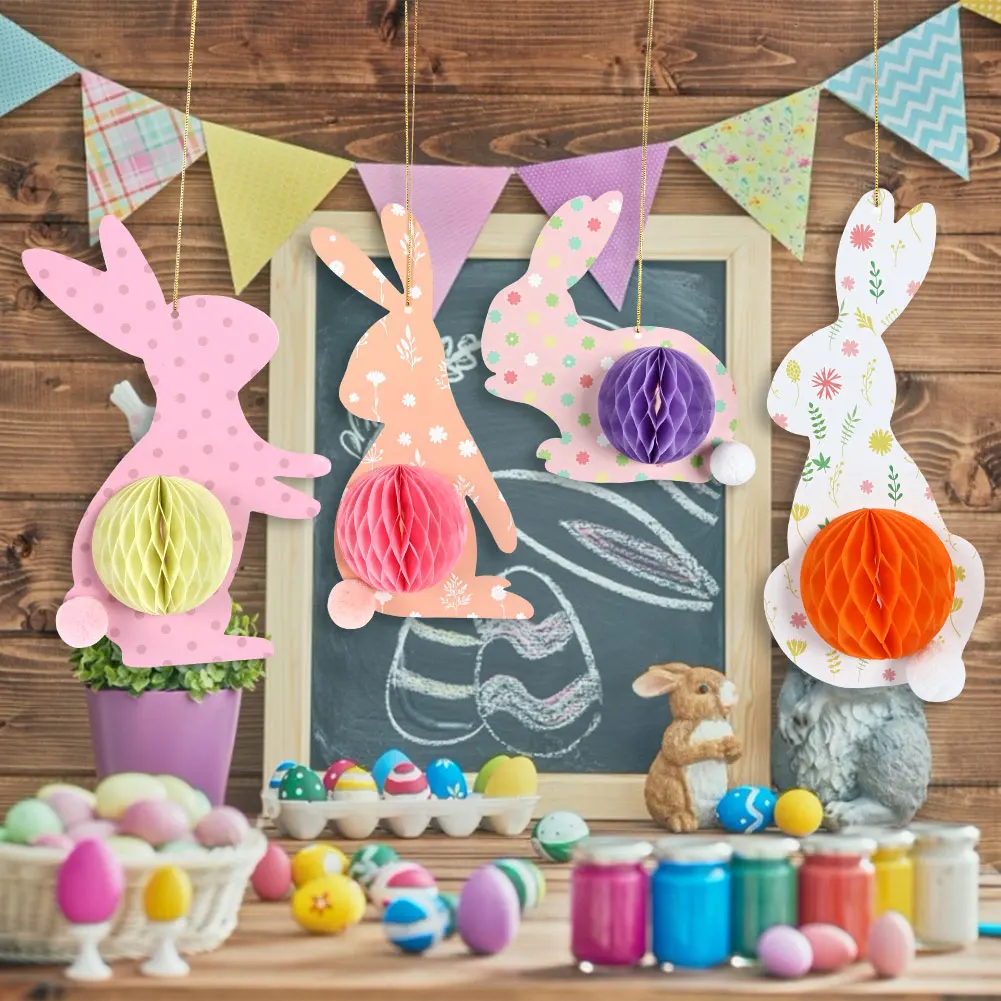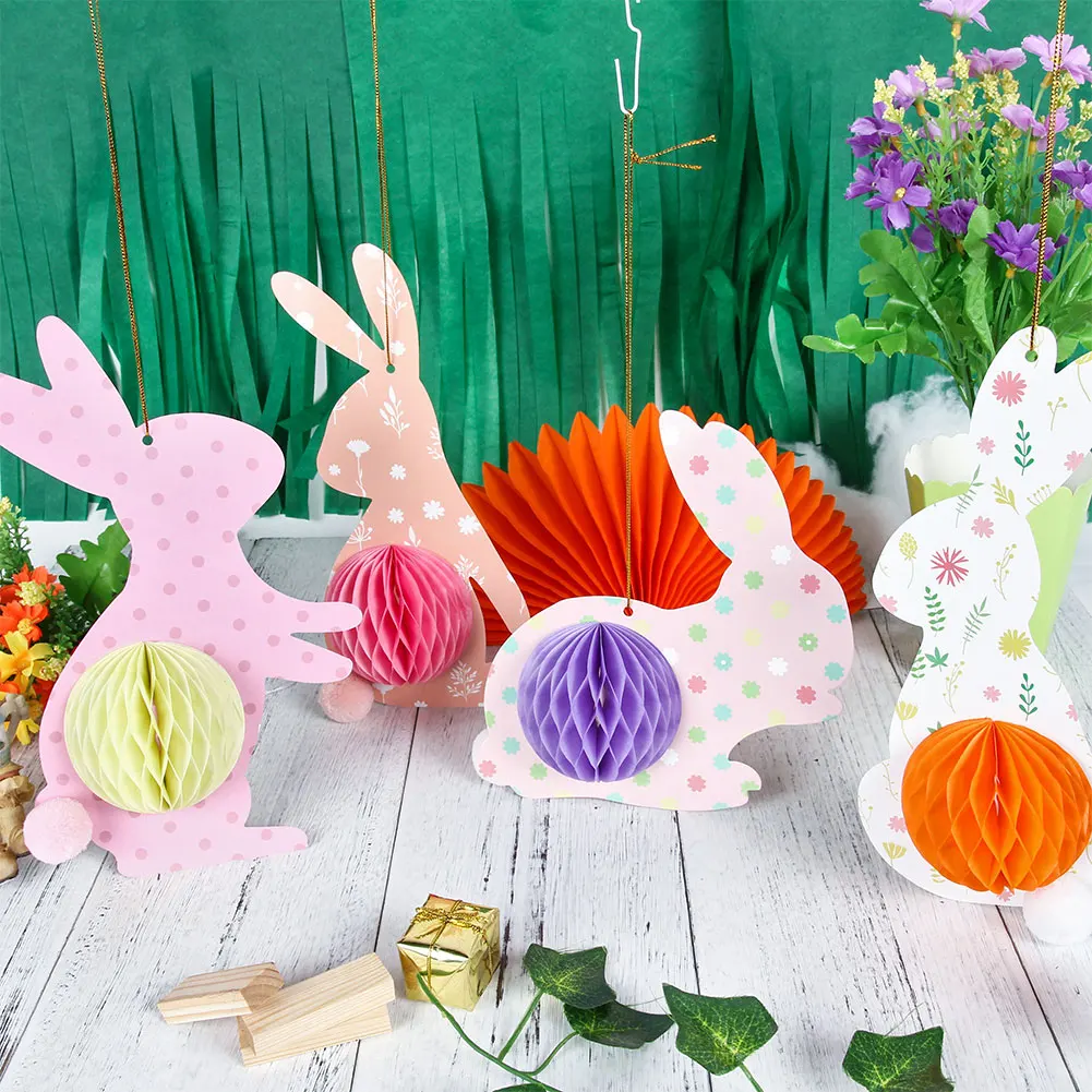 Посылка 4 штуки Каждый кролик имеет сотовое тело, его легко собрать. Идеально подходит для пасхальных вечерние украшения для дома.