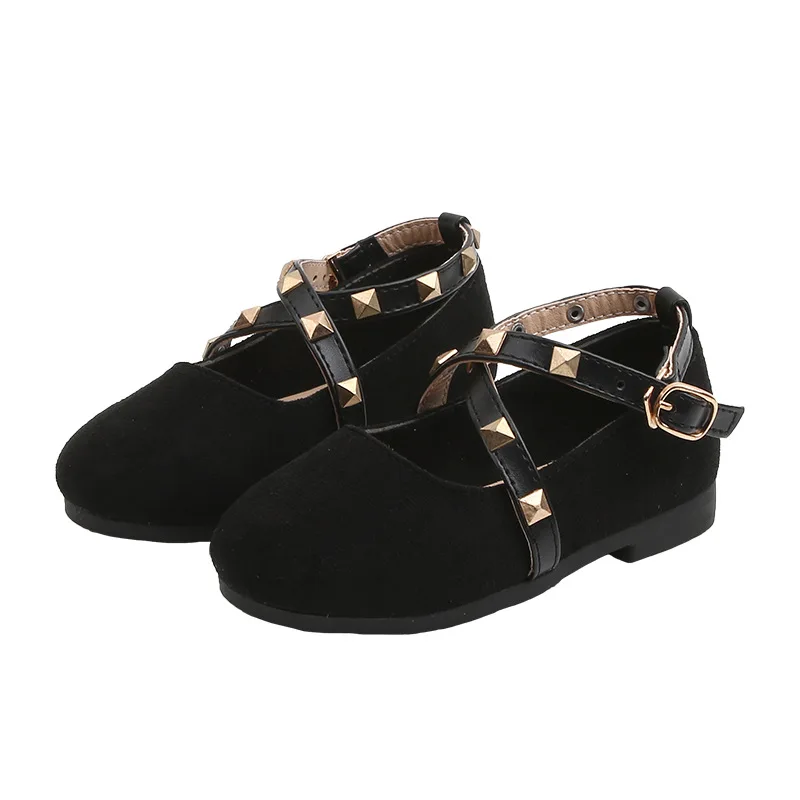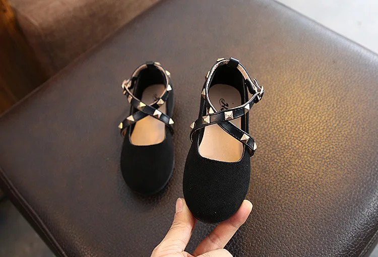Новинка 2020 года; Детская обувь принцессы на низком каблуке с заклепками для маленьких девочек; Вечерние кожаные туфли с нескользящей подошвой; От 1 до 6 лет