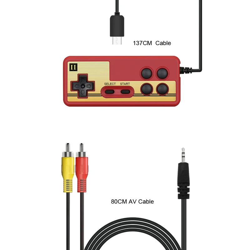 Цифровое многоплатформенное устройство, вы можете играть на телевизоре, который имеет интерфейсы AV OUT для лучшего игрового опыта. 80 см av-кабель входит в посылка.