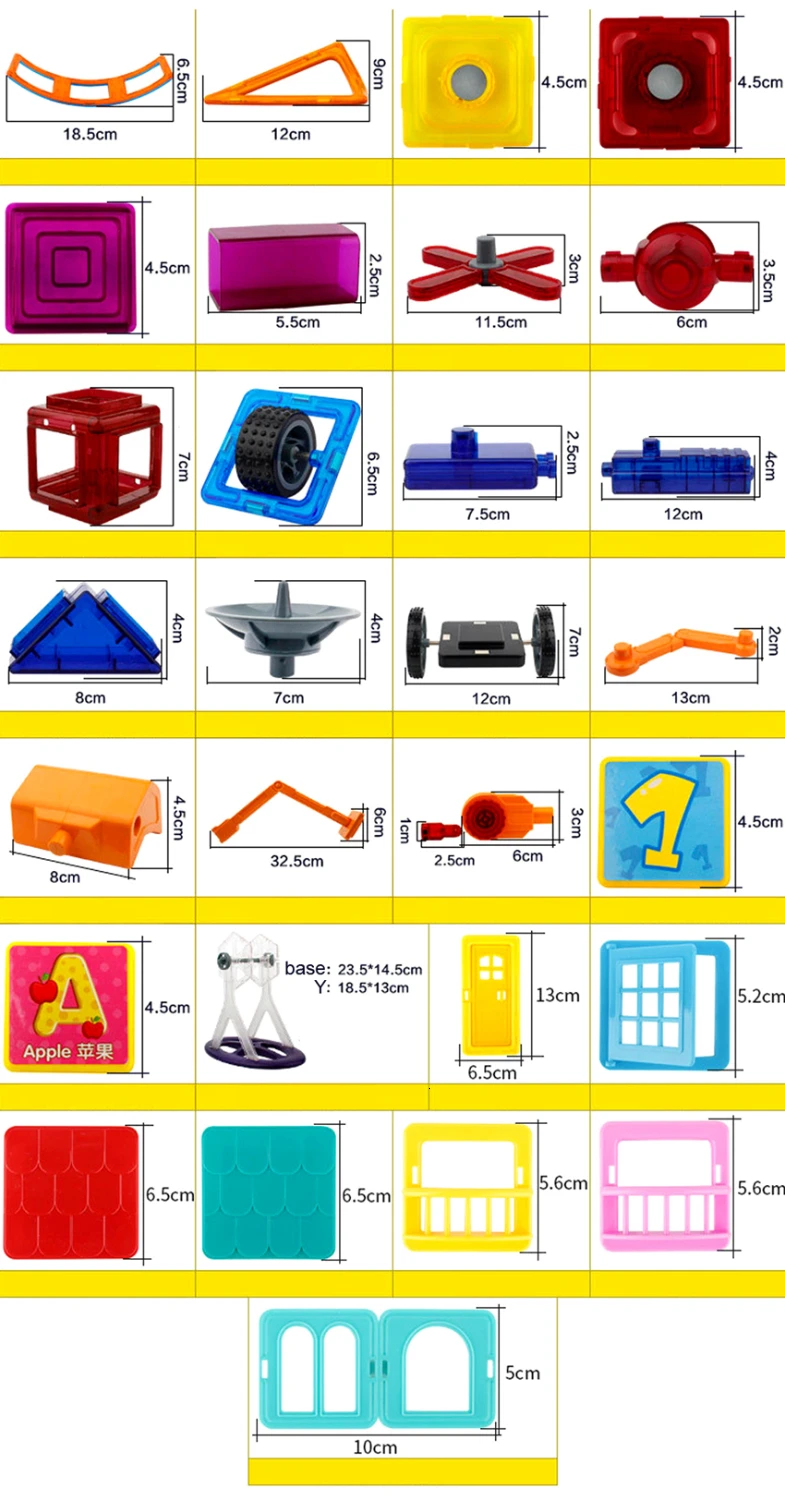 Материал: пластик ABS + сильный магнит Наши магнитные блоки высокого качества, изготовлены из 100% экологически чистого АБС-материала. Наши магнитные блоки прошли сертификацию Europe EN-71, US ASTM, Janpan ST toys и China CCC. Наслаждайтесь весельем наших продуктов с вашими детьми! Посылка включает:1 Набор больших магнитных блоков