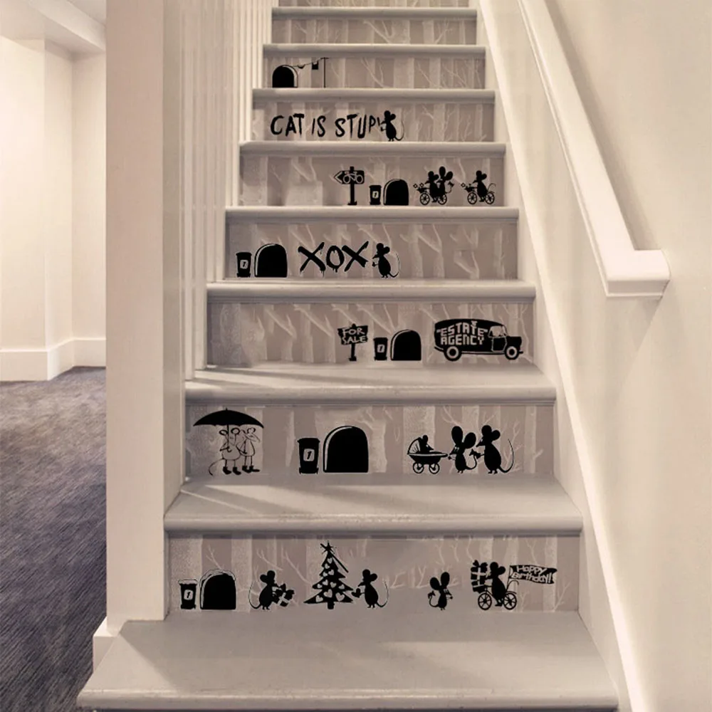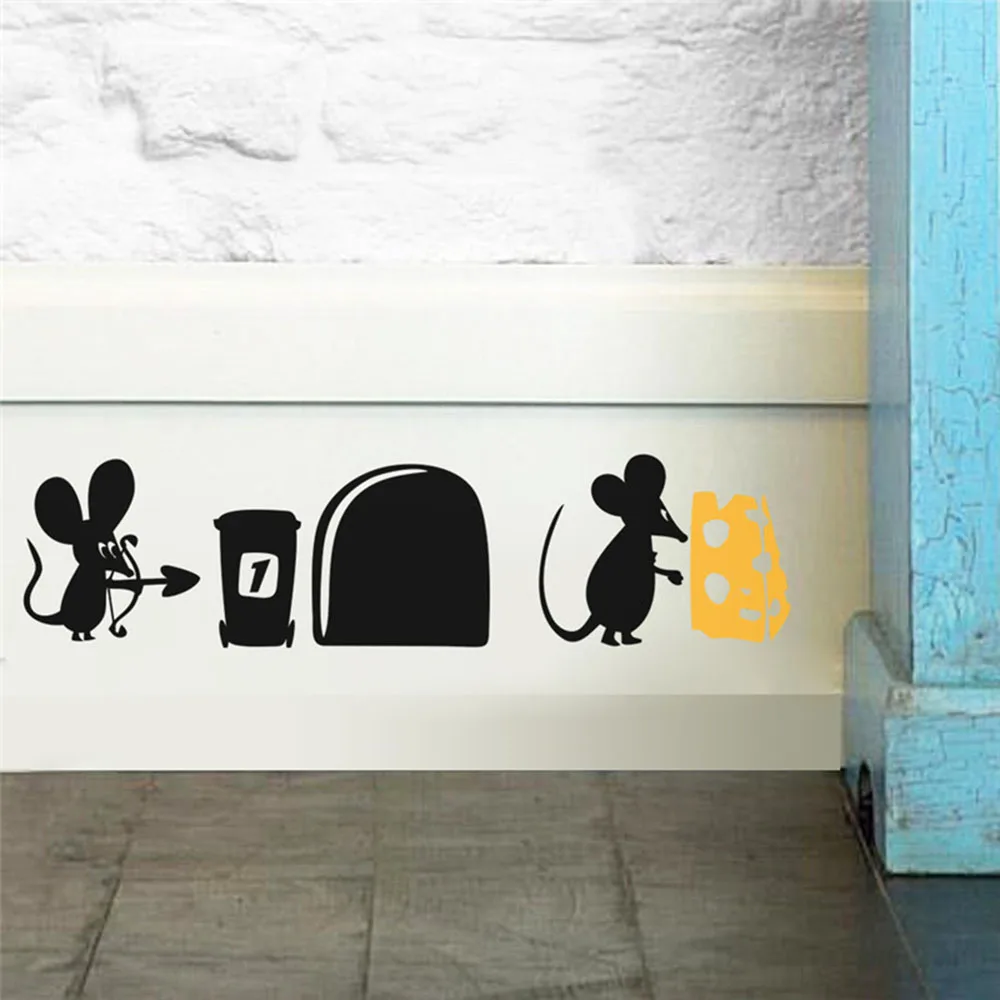 Забавная мультяшная мышка, Настенная Наклейка с отверстием для мыши, сделай сам, наклейка для юбки, украшение для комнаты, уголок, лестница, фреска, украшение для детской комнаты, украшение для дома