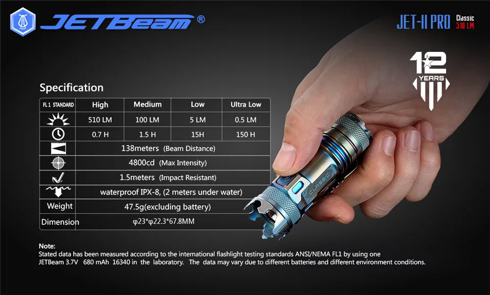 Jetbeam II PRO Cree XP-L светодиодный мини-фонарь светильник 16340 небольшой Кемпинговые фонари светильник s с самозащитой выбивания стекла
