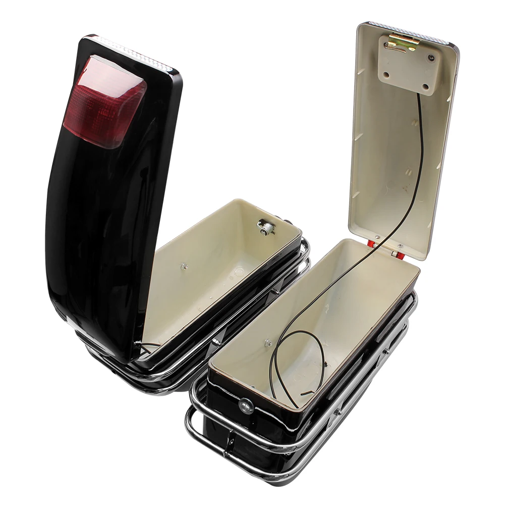 Параметры: Наименование товара: боковые боксы мотоцикла Материал: АБС-пластик, Пластик Размер: как показано на картинке Ёмкость: 24 л Расстояние Монтажного отверстия: 14,2 см Зеленый провод: отрицательный полюс Красный провод: положительный полюс Подходит для Honda Cruisers, harley davidson, yamha, Kawasaki, Suzuki или любого пользовательского приложения Количество: 1 пара Особенности: 100% Фирменная Новинка Встроенные лампы с одной функцией и набор монтажных деталей и хромированных рельсов Включает 2 ключа и монтажное оборудование Красные огни имеют одну лампу и могут быть подключены как поворотники, ходовые огни или стоп-сигналы. Посылка включает в себя: 1 пара боковых коробок для мотоцикла